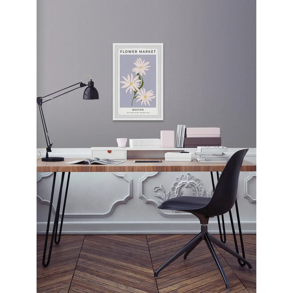 Celebrate your love for Boston with this drawing print that features an advertisement for the flower market in Boston. Featuring three pale pink flowers against a stunning lavender background. Proudly printed in the USA, this piece is printed on high quality archive paper and professionally hand-framed. With wall-mounting hooks included, this artful accent is ready to hang up as soon as it reaches your front door. • Top quality Giclee print on high resolution Archive Paper • Hand cut deckled edges • High quality durable non-warping frame • Finished under shatter resistant plexiglass • Arrives ready to hang • Includes a certificate of authenticity • Printed in the USA