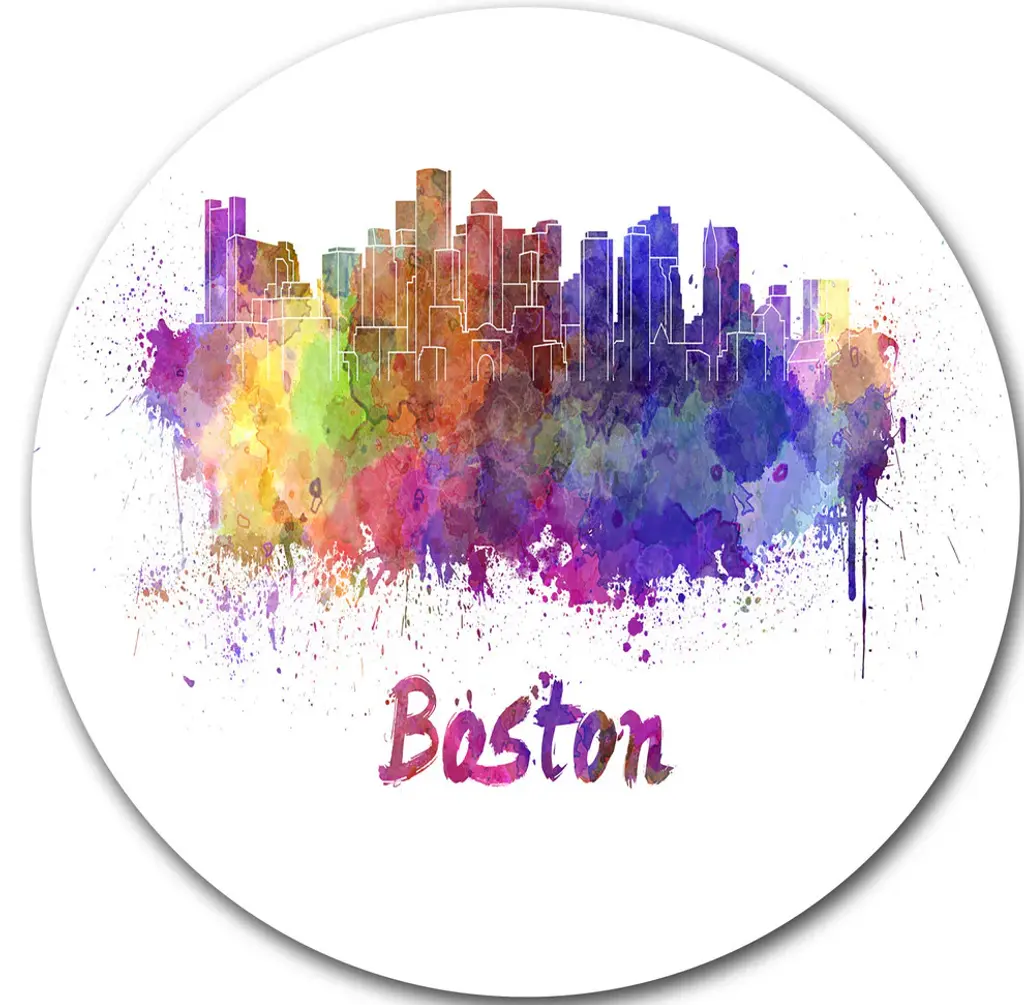 Boston Skyline, Cityscape Large Disc Metal Wall Art, 23"