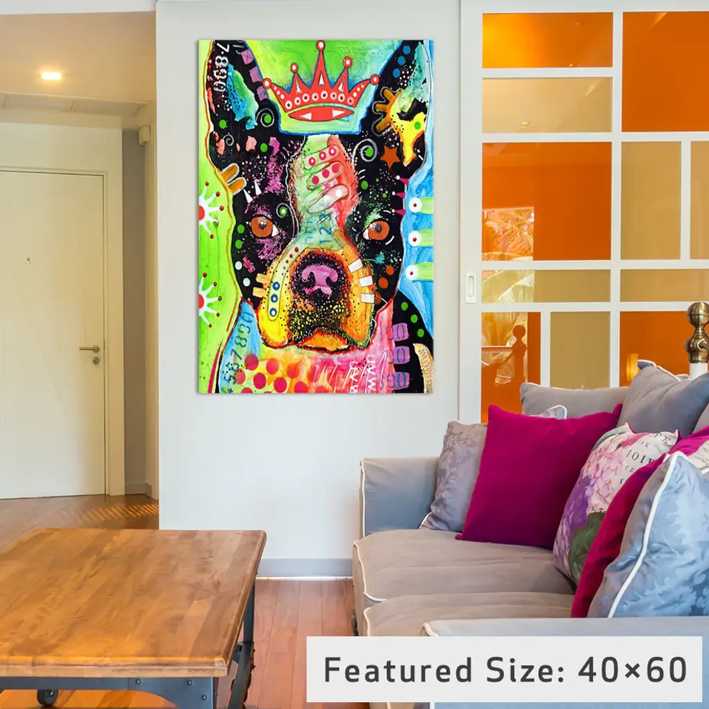 "Boston Terrier Crowned" Wrapped Canvas Art Print, 26x18x1.5