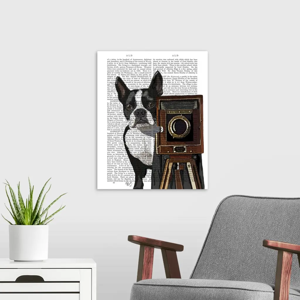 Boston Terrier Photographer wall art for home and office decor. Discover canvas art prints, photos, mural, big canvas art and framed wall art in GreatBigCanvas.com's varied collections.