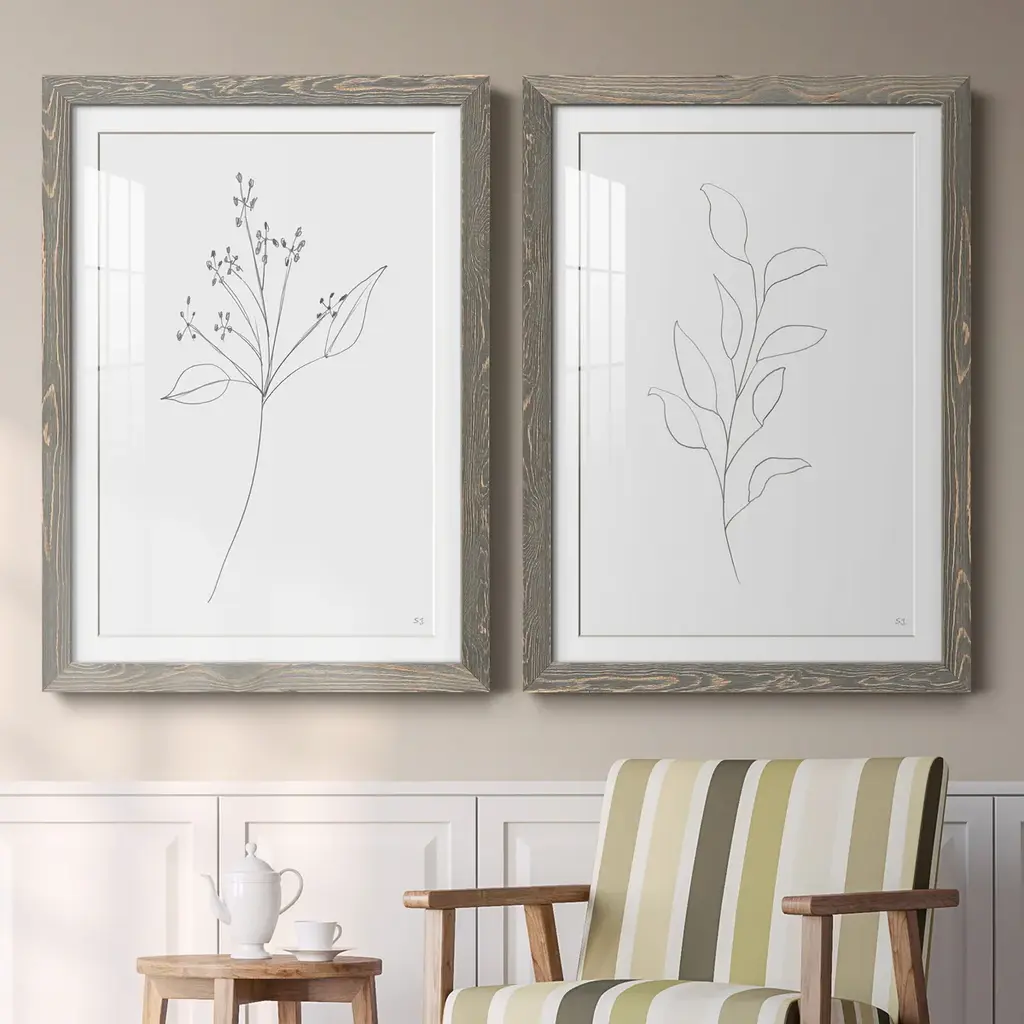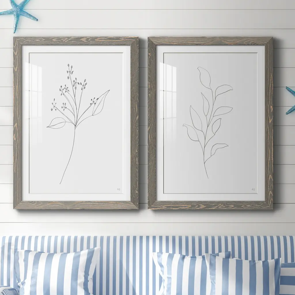 Botanical Gesture V-Premium Framed Print - Ready to Hang Framed in distressed wood and available in an array of sizes and colors Each piece is joined and assembled by hand and comes ready to hang 2 INCH BEVELED MATTE BOARD PLEXIGLASS COVERING READY TO HANG MADE IN THE USA SOLID WOOD FRAME MADE IN USA FADE RESISTANT GICLEE PRINTING on Canvas or Paper