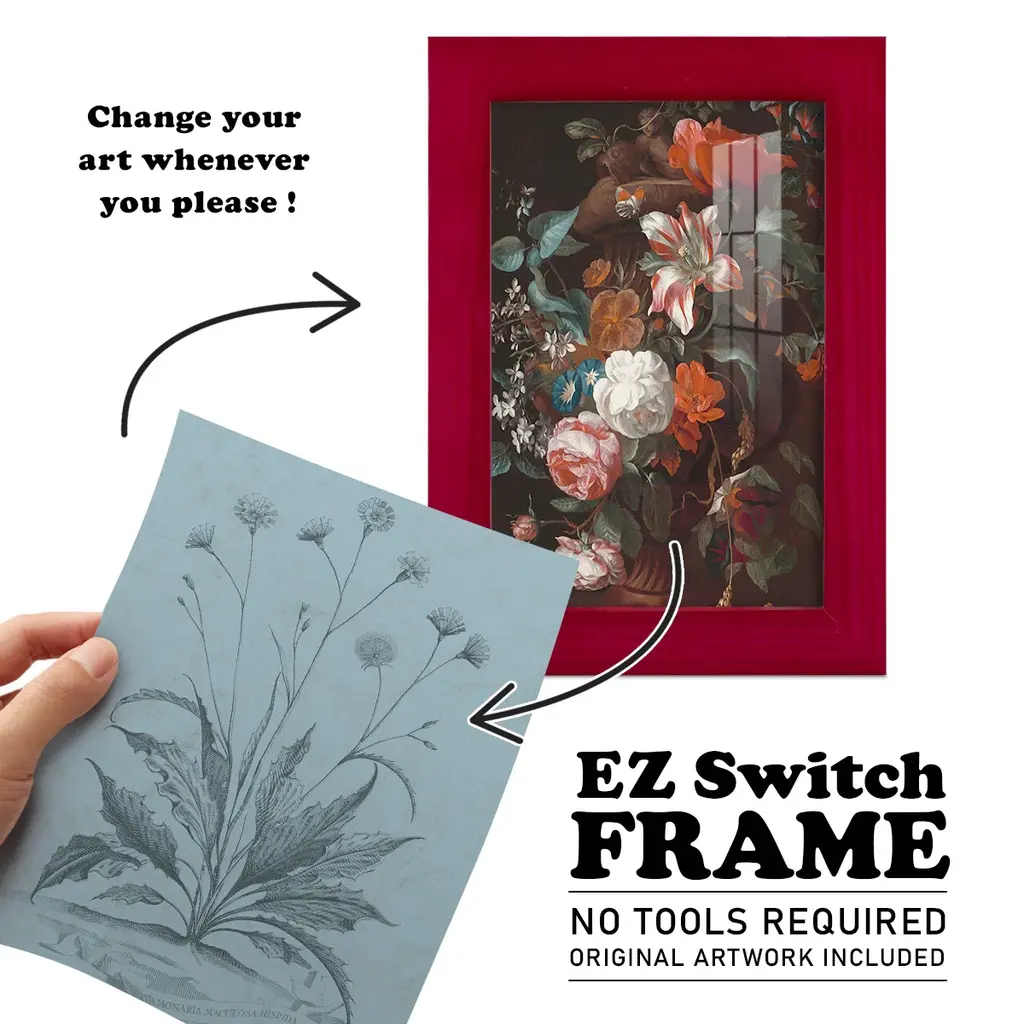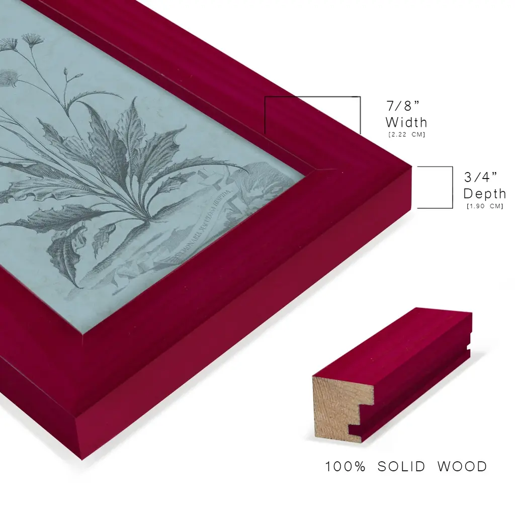 Botanical on Teal IV -EZ SWITCH Framed Print w/glass-Cherry Red A delightful, framed print. Featuring a solid wood frame with real wood glass. This premium print is giclee quality. In addition, every frame features a removable back and table top stand. This allows you to change your art in the future or to just stand the art on a table for a new look. We are sure you'll enjoy our new series of EZ SWITCH Framed Art. Solid Wood Frame Real Glass Removable / Replaceable Art Built in Tabletop Stand Sizes range from 4x6 up to 12x15 - buy just one or pair them up as sets as you see fit.