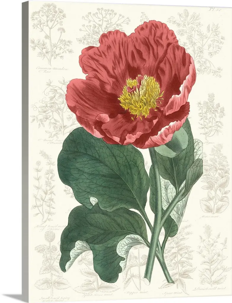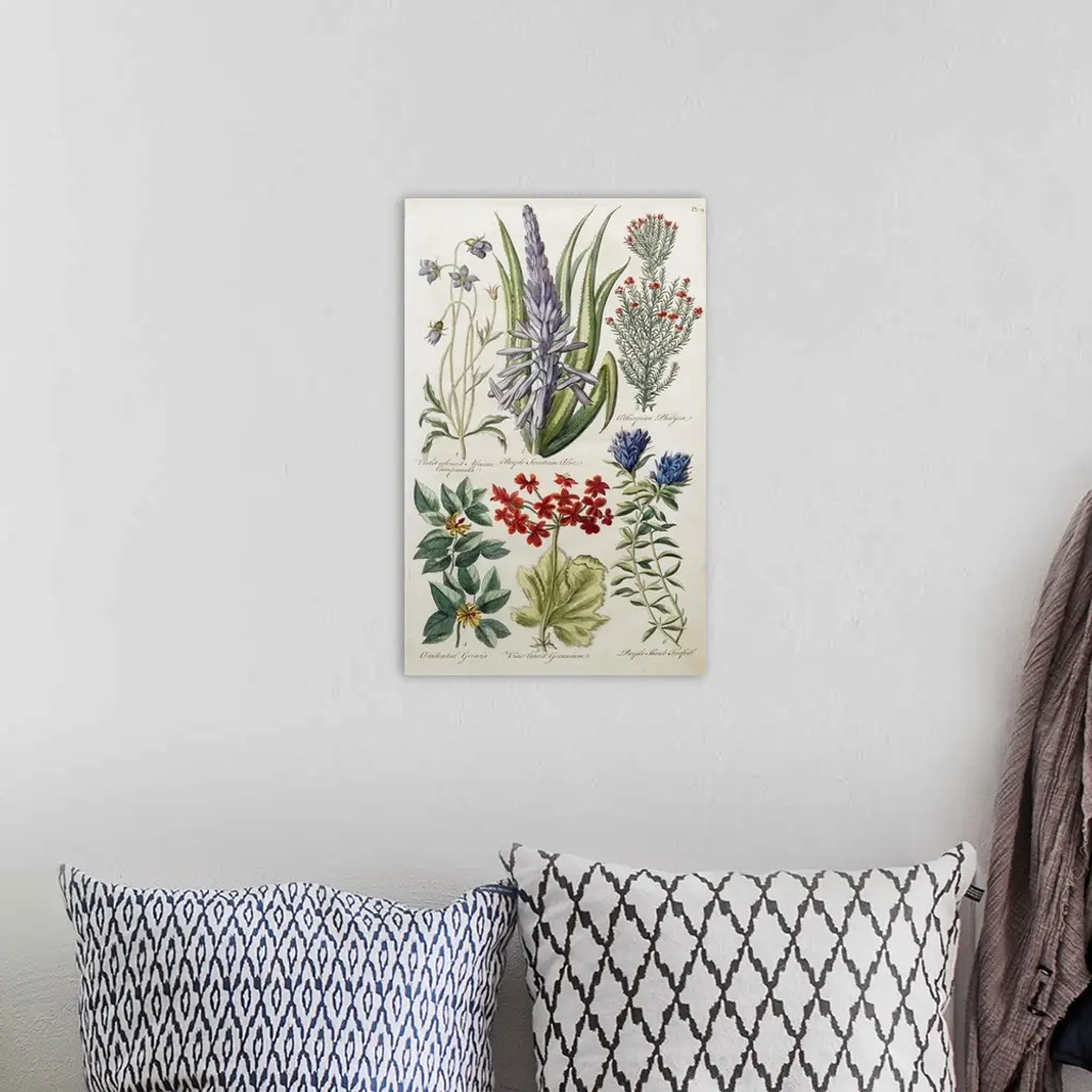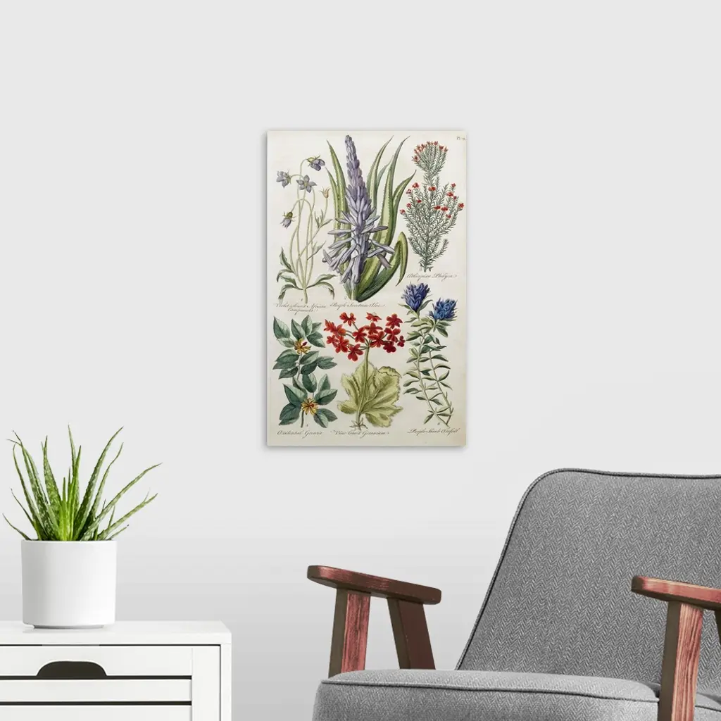 Botanical Print Of Various Flowers By J. Hill wall art for home and office decor. Discover canvas art prints, photos, mural, big canvas art and framed wall art in GreatBigCanvas.com's varied collections.