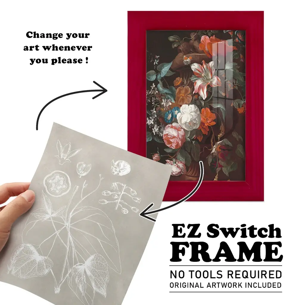 Botanical Schematic II -EZ SWITCH Framed Print w/glass-Cherry Red A delightful, framed print. Featuring a solid wood frame with real wood glass. This premium print is giclee quality. In addition, every frame features a removable back and table top stand. This allows you to change your art in the future or to just stand the art on a table for a new look. We are sure you'll enjoy our new series of EZ SWITCH Framed Art. Solid Wood Frame Real Glass Removable / Replaceable Art Built in Tabletop Stand Sizes range from 4x6 up to 12x15 - buy just one or pair them up as sets as you see fit.