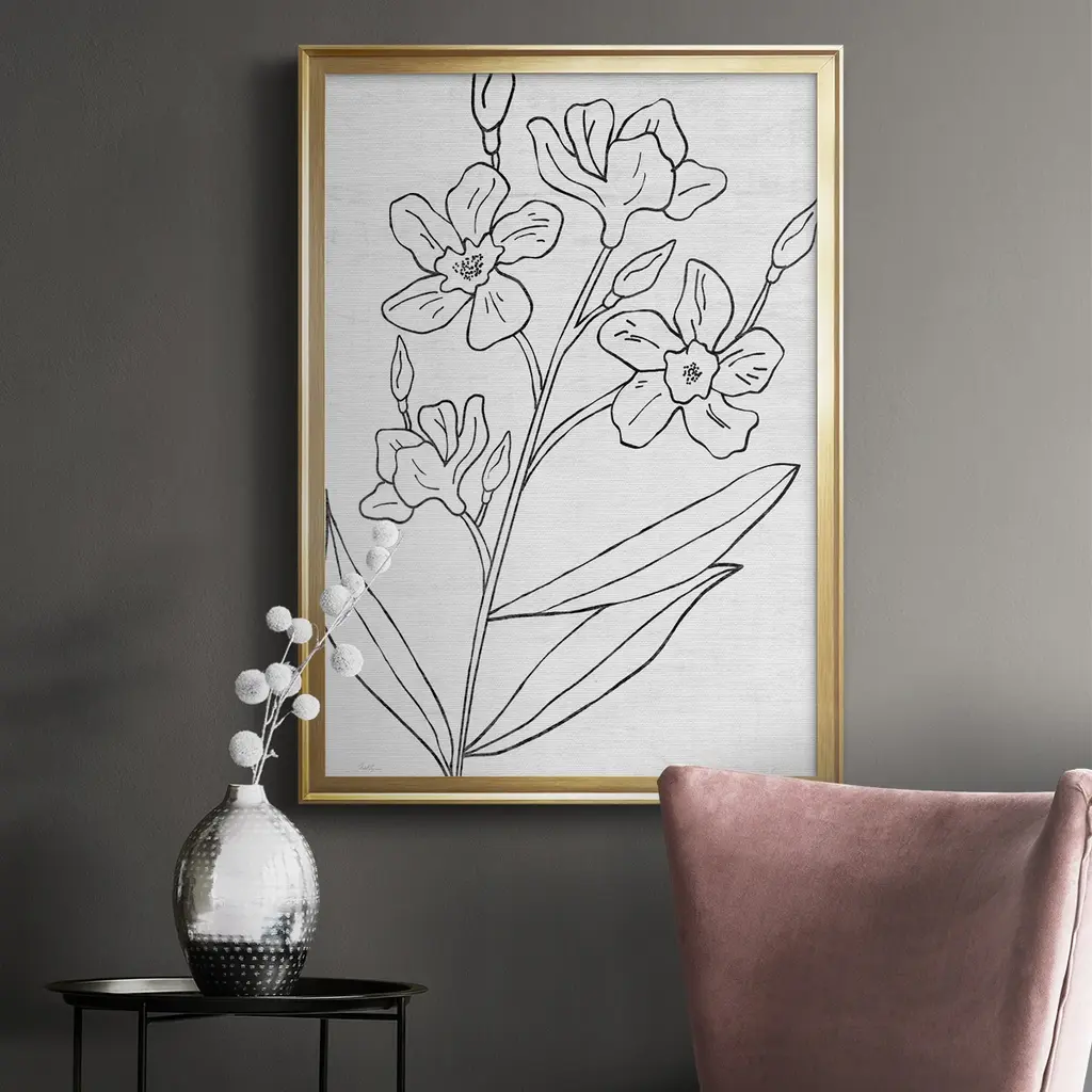 Botanical Sketch I Premium Framed Print - Ready to Hang A Premium Framed Print created to last. Framed in distressed wood and available in an array of sizes and colors Featuring a beveled a solid wood stretcher bar, each piece comes ready to hand 4 SIZES AVAILABLE 30.5''X42.5'' - Overall Size 26.5'X36.5'' - Overall Size 22.5''x30.5'' - Overall Size 18.5''x24.5'' - Overall Size Each piece is made to order. Each piece comes with hanging hardware. Made in the USA Ready to Hang