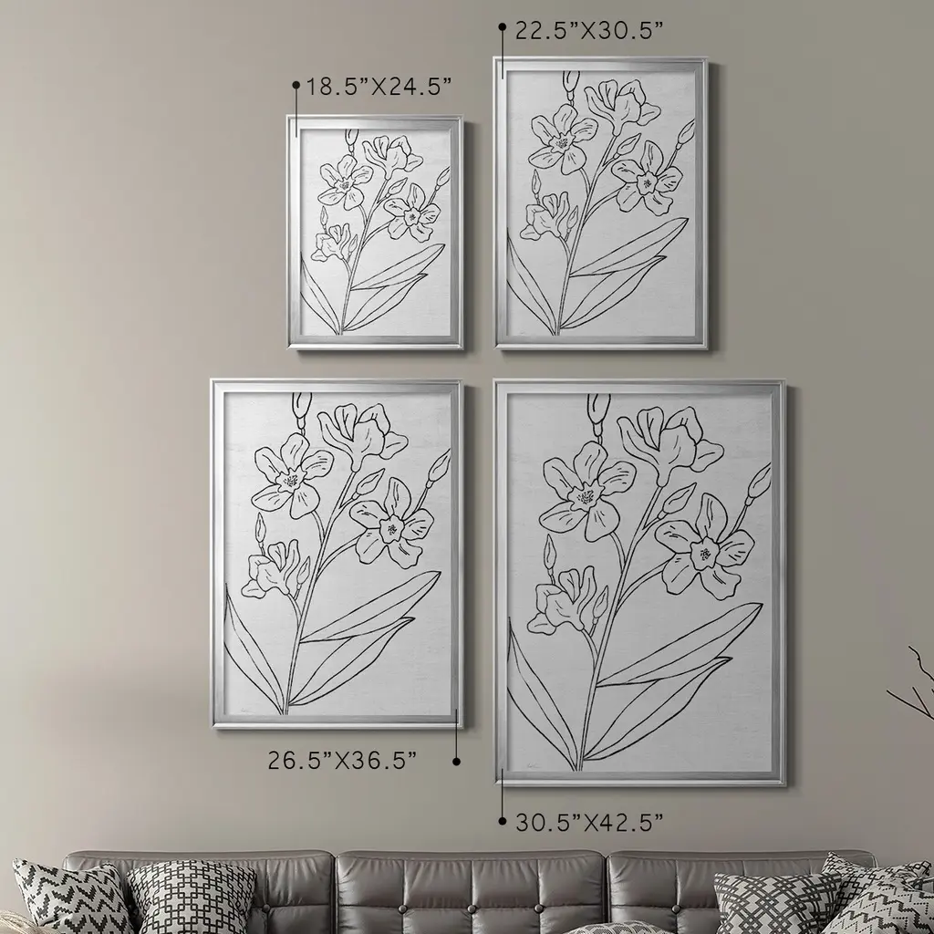 Botanical Sketch I Premium Framed Print - Ready to Hang A Premium Framed Print created to last. Framed in distressed wood and available in an array of sizes and colors Featuring a beveled a solid wood stretcher bar, each piece comes ready to hand 4 SIZES AVAILABLE 30.5''X42.5'' - Overall Size 26.5'X36.5'' - Overall Size 22.5''x30.5'' - Overall Size 18.5''x24.5'' - Overall Size Each piece is made to order. Each piece comes with hanging hardware. Made in the USA Ready to Hang