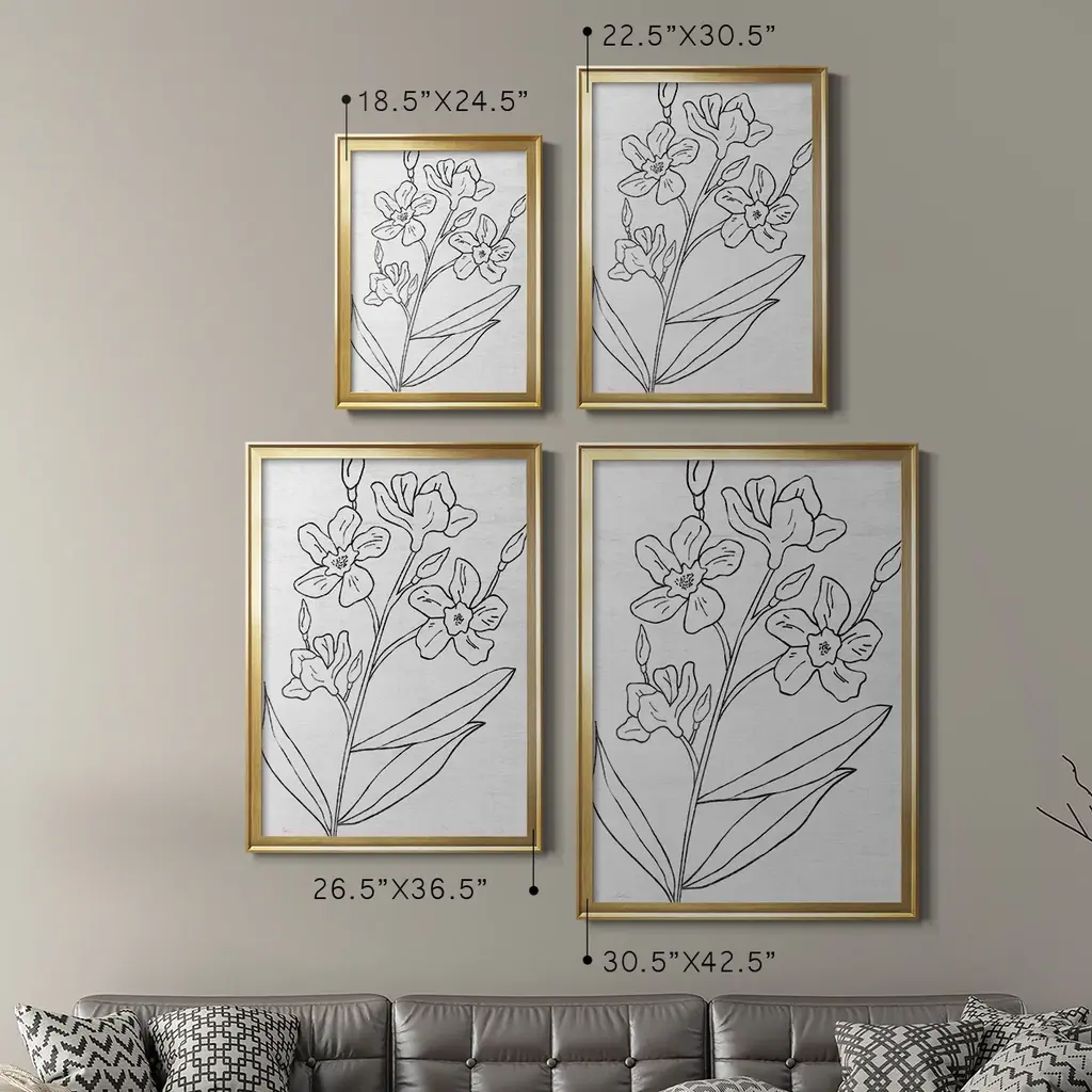 Botanical Sketch I Premium Framed Print - Ready to Hang A Premium Framed Print created to last. Framed in distressed wood and available in an array of sizes and colors Featuring a beveled a solid wood stretcher bar, each piece comes ready to hand 4 SIZES AVAILABLE 30.5''X42.5'' - Overall Size 26.5'X36.5'' - Overall Size 22.5''x30.5'' - Overall Size 18.5''x24.5'' - Overall Size Each piece is made to order. Each piece comes with hanging hardware. Made in the USA Ready to Hang