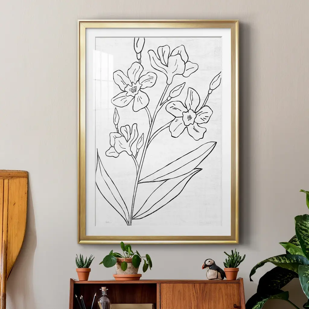 Botanical Sketch I Premium Framed Print - Ready to Hang A Premium Framed Print created to last. Framed in distressed wood and available in an array of sizes and colors Featuring a beveled a solid wood stretcher bar, each piece comes ready to hand 4 SIZES AVAILABLE 30.5''X42.5'' - Overall Size 26.5'X36.5'' - Overall Size 22.5''x30.5'' - Overall Size 18.5''x24.5'' - Overall Size Each piece is made to order. Each piece comes with hanging hardware. Made in the USA Ready to Hang Giclee Paper Print Acrylic Glass Beveled Matt Board