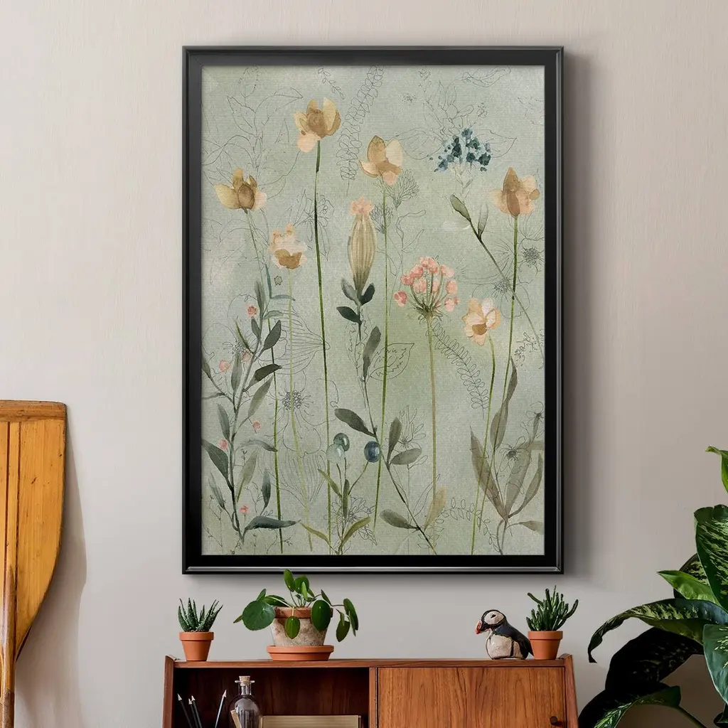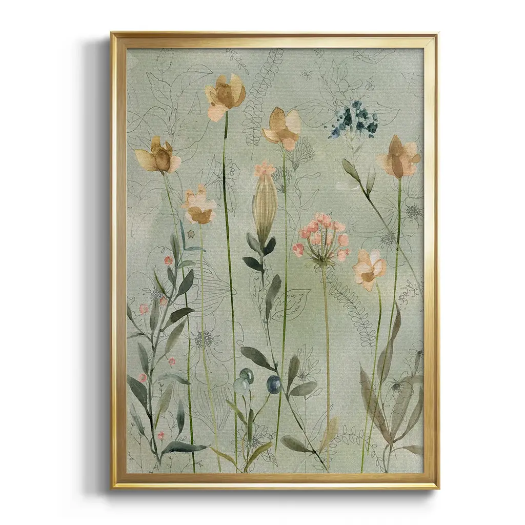 Botanical Sketchbook Premium Framed Print - Ready to Hang A Premium Framed Print created to last. Framed in distressed wood and available in an array of sizes and colors Featuring a beveled a solid wood stretcher bar, each piece comes ready to hand 4 SIZES AVAILABLE 30.5''X42.5'' - Overall Size 26.5'X36.5'' - Overall Size 22.5''x30.5'' - Overall Size 18.5''x24.5'' - Overall Size Each piece is made to order. Each piece comes with hanging hardware. Made in the USA Ready to Hang
