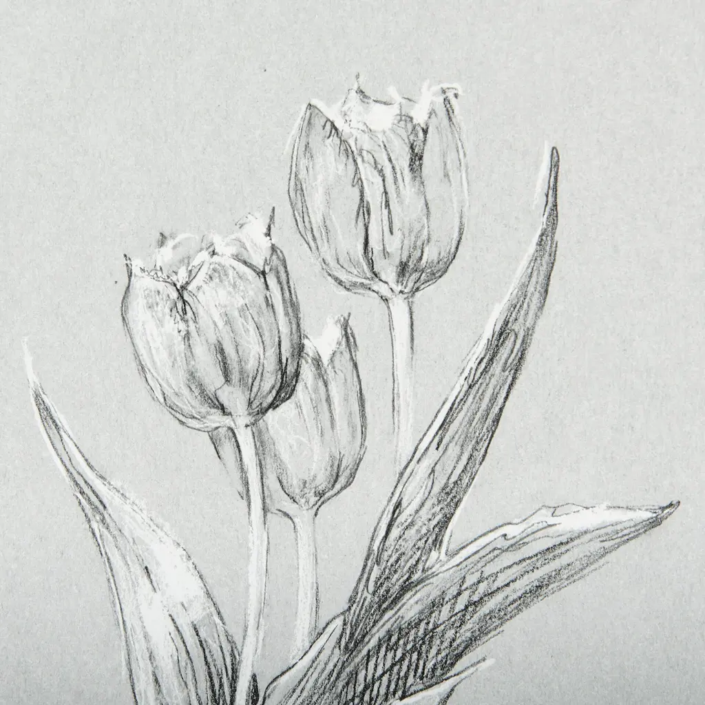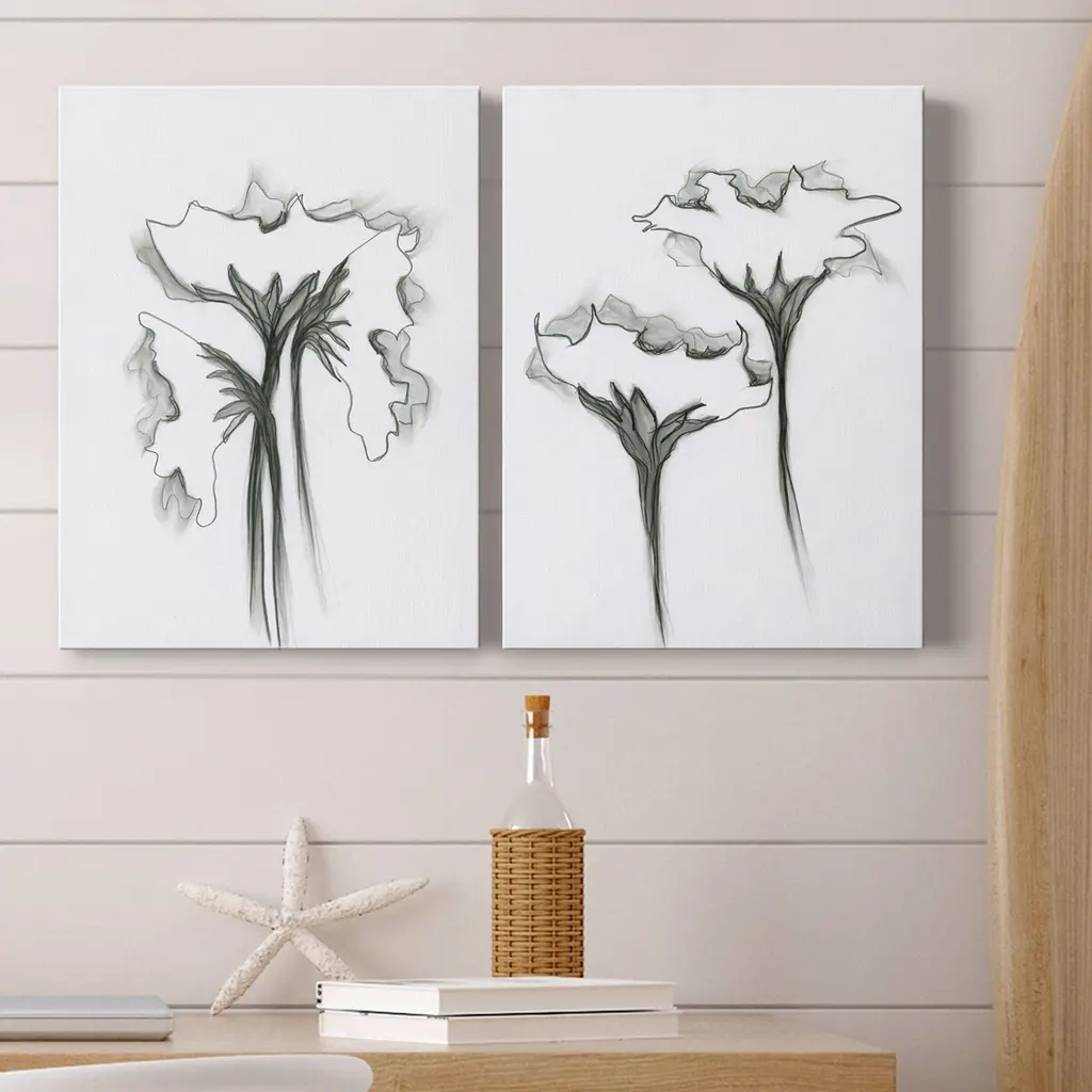 Botanical Sketches Ii (Grey) Framed Art Print - Black