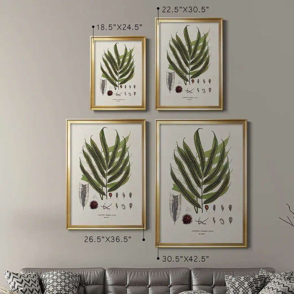 Botanical Society Ferns II Premium Framed Print - Ready to Hang A Premium Framed Print created to last. Framed in distressed wood and available in an array of sizes and colors Featuring a beveled a solid wood stretcher bar, each piece comes ready to hand 4 SIZES AVAILABLE 30.5''X42.5'' - Overall Size 26.5'X36.5'' - Overall Size 22.5''x30.5'' - Overall Size 18.5''x24.5'' - Overall Size Each piece is made to order. Each piece comes with hanging hardware. Made in the USA Ready to Hang
