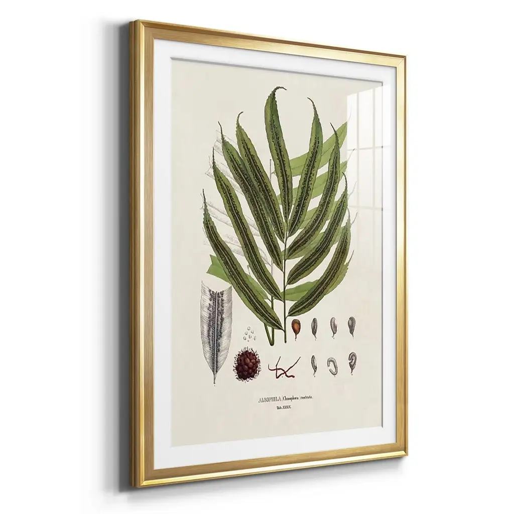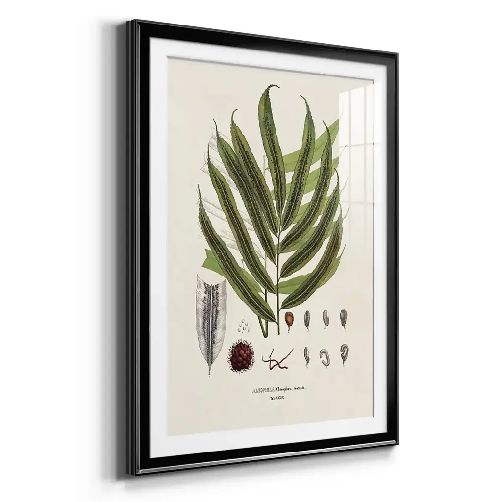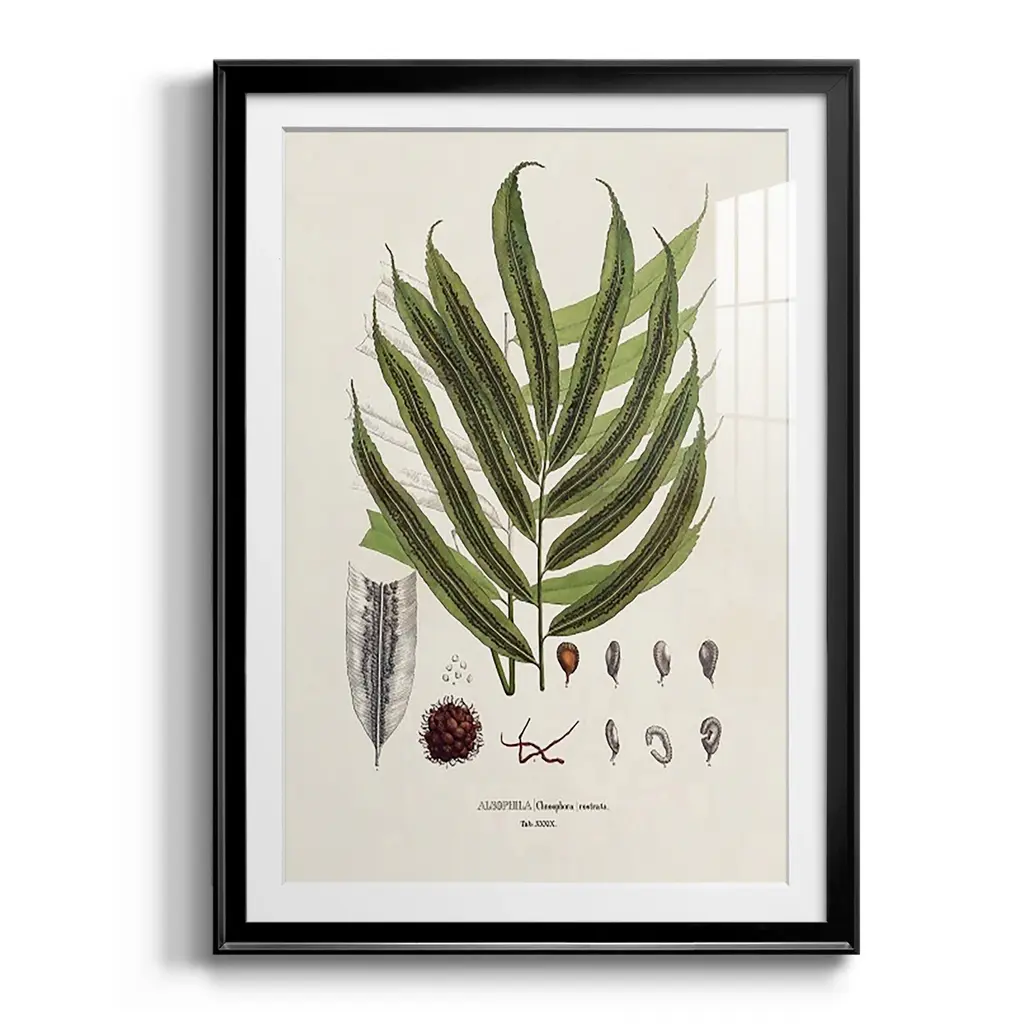 Botanical Society Ferns II Premium Framed Print - Ready to Hang A Premium Framed Print created to last. Framed in distressed wood and available in an array of sizes and colors Featuring a beveled a solid wood stretcher bar, each piece comes ready to hand 4 SIZES AVAILABLE 30.5''X42.5'' - Overall Size 26.5'X36.5'' - Overall Size 22.5''x30.5'' - Overall Size 18.5''x24.5'' - Overall Size Each piece is made to order. Each piece comes with hanging hardware. Made in the USA Ready to Hang Giclee Paper Print Acrylic Glass Beveled Matt Board