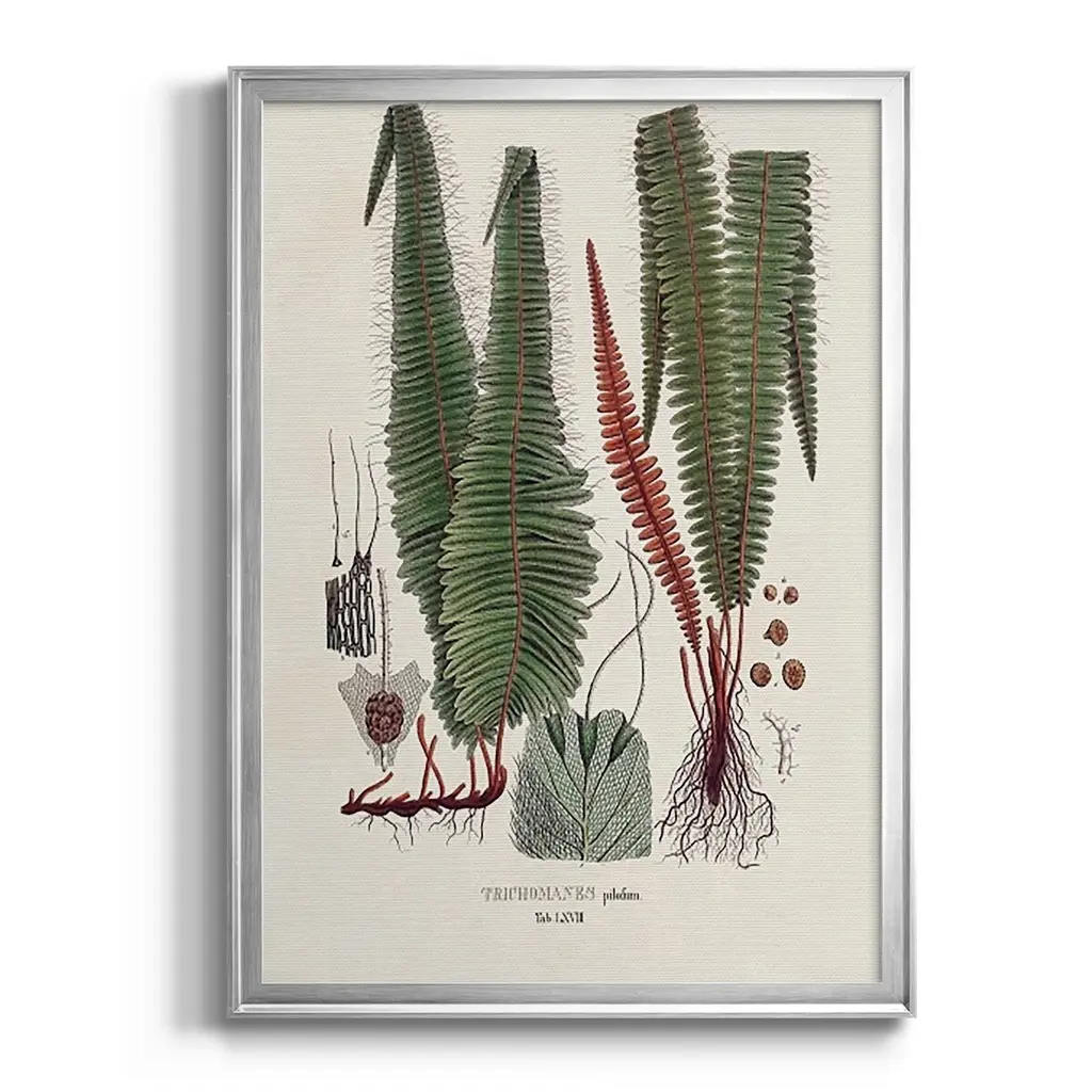 Botanical Society Ferns IV Premium Framed Print - Ready to Hang A Premium Framed Print created to last. Framed in distressed wood and available in an array of sizes and colors Featuring a beveled a solid wood stretcher bar, each piece comes ready to hand 4 SIZES AVAILABLE 30.5''X42.5'' - Overall Size 26.5'X36.5'' - Overall Size 22.5''x30.5'' - Overall Size 18.5''x24.5'' - Overall Size Each piece is made to order. Each piece comes with hanging hardware. Made in the USA Ready to Hang