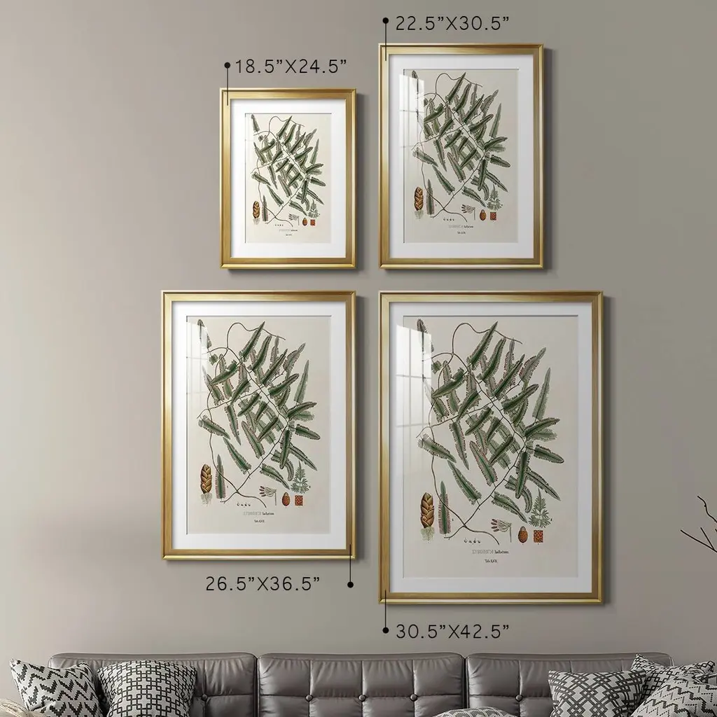 Botanical Society Ferns X Premium Framed Print - Ready to Hang A Premium Framed Print created to last. Framed in distressed wood and available in an array of sizes and colors Featuring a beveled a solid wood stretcher bar, each piece comes ready to hand 4 SIZES AVAILABLE 30.5''X42.5'' - Overall Size 26.5'X36.5'' - Overall Size 22.5''x30.5'' - Overall Size 18.5''x24.5'' - Overall Size Each piece is made to order. Each piece comes with hanging hardware. Made in the USA Ready to Hang Giclee Paper Print Acrylic Glass Beveled Matt Board