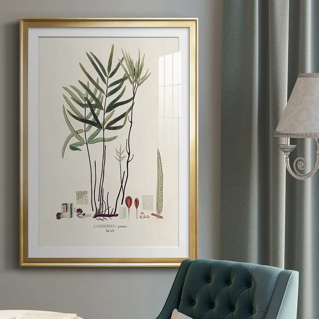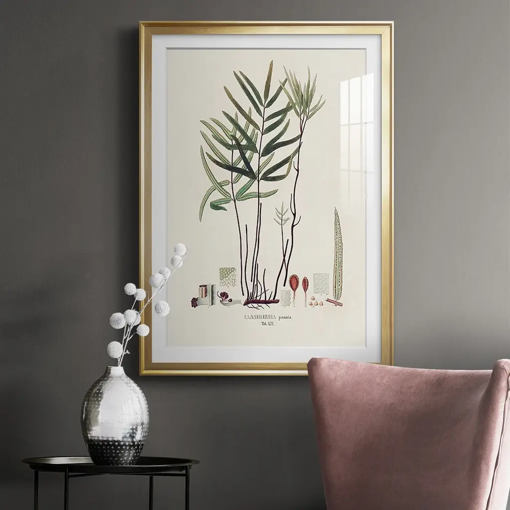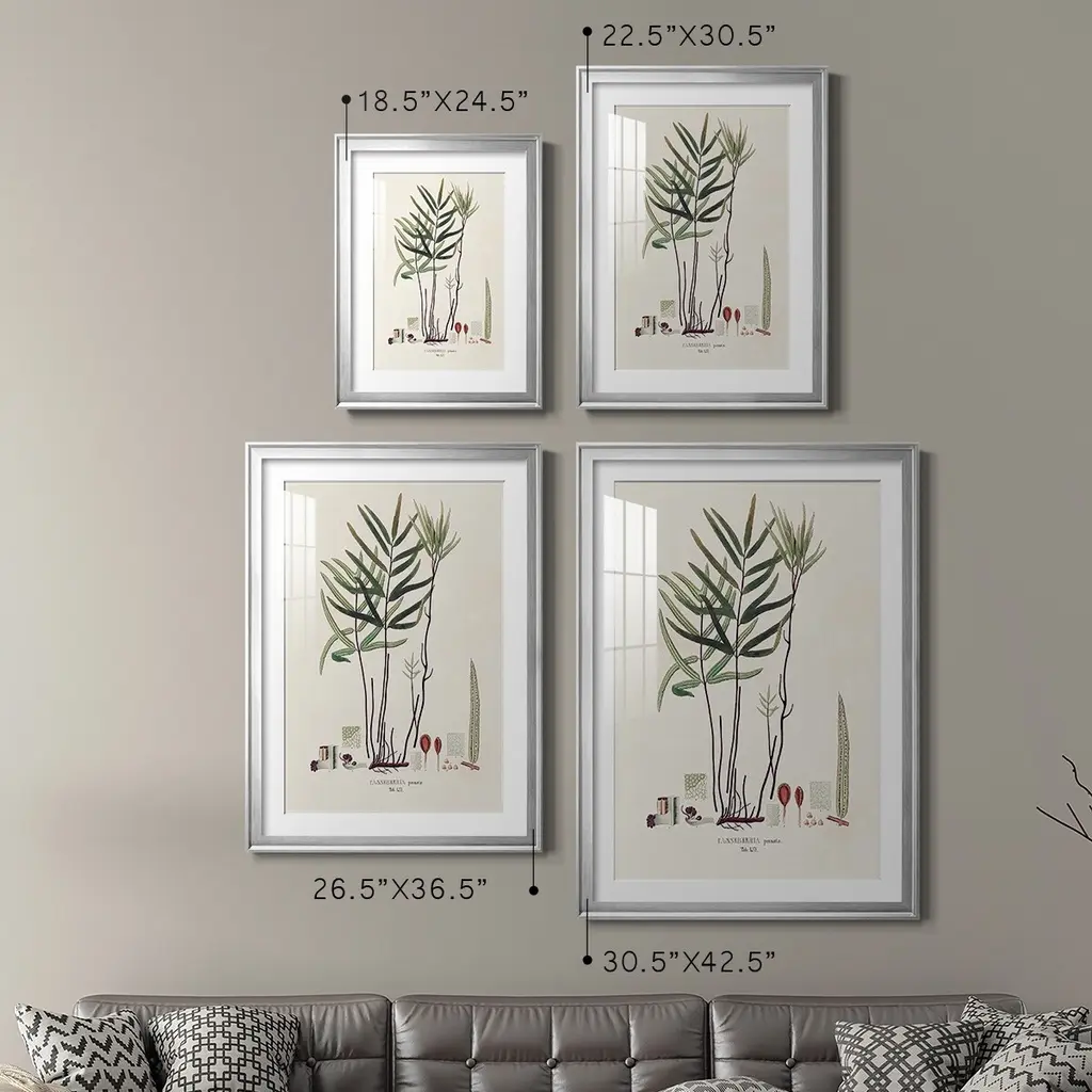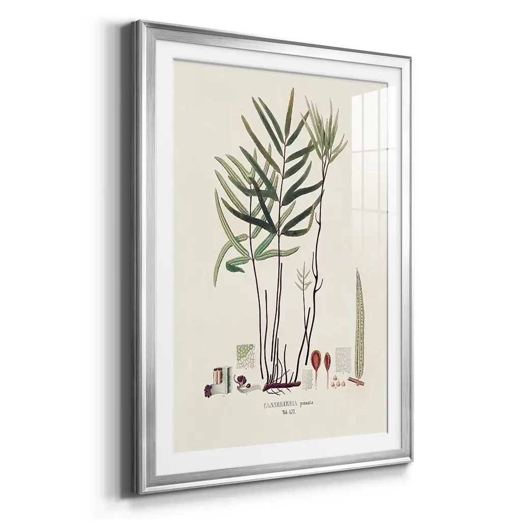 Botanical Society Ferns XI Premium Framed Print - Ready to Hang A Premium Framed Print created to last. Framed in distressed wood and available in an array of sizes and colors Featuring a beveled a solid wood stretcher bar, each piece comes ready to hand 4 SIZES AVAILABLE 30.5''X42.5'' - Overall Size 26.5'X36.5'' - Overall Size 22.5''x30.5'' - Overall Size 18.5''x24.5'' - Overall Size Each piece is made to order. Each piece comes with hanging hardware. Made in the USA Ready to Hang Giclee Paper Print Acrylic Glass Beveled Matt Board