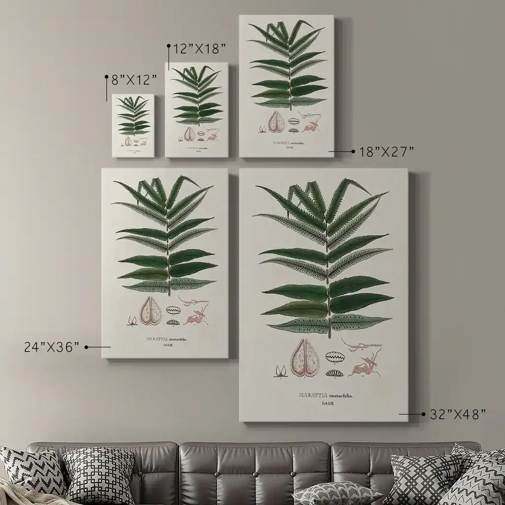 Botanical Society Ferns XII Premium Gallery Wrapped Canvas - Ready to Hang A premium hand stretched gallery wrapped canvas print created to last. Featuring a beveled a solid wood stretcher bar, each piece comes ready to hand 6 SIZES AVAILABLE 8''X12'' - Overall Size 12''X18'' - Overall Size 18''X27'' - Overall Size 24''x36'' - Overall Size 32''x48'' - Overall Size 40''x60'' - Overall Size Each piece is made to order. Built to Last Each piece comes ready to hang Solid wood stretcher Fade and Water resistant Made domestically
