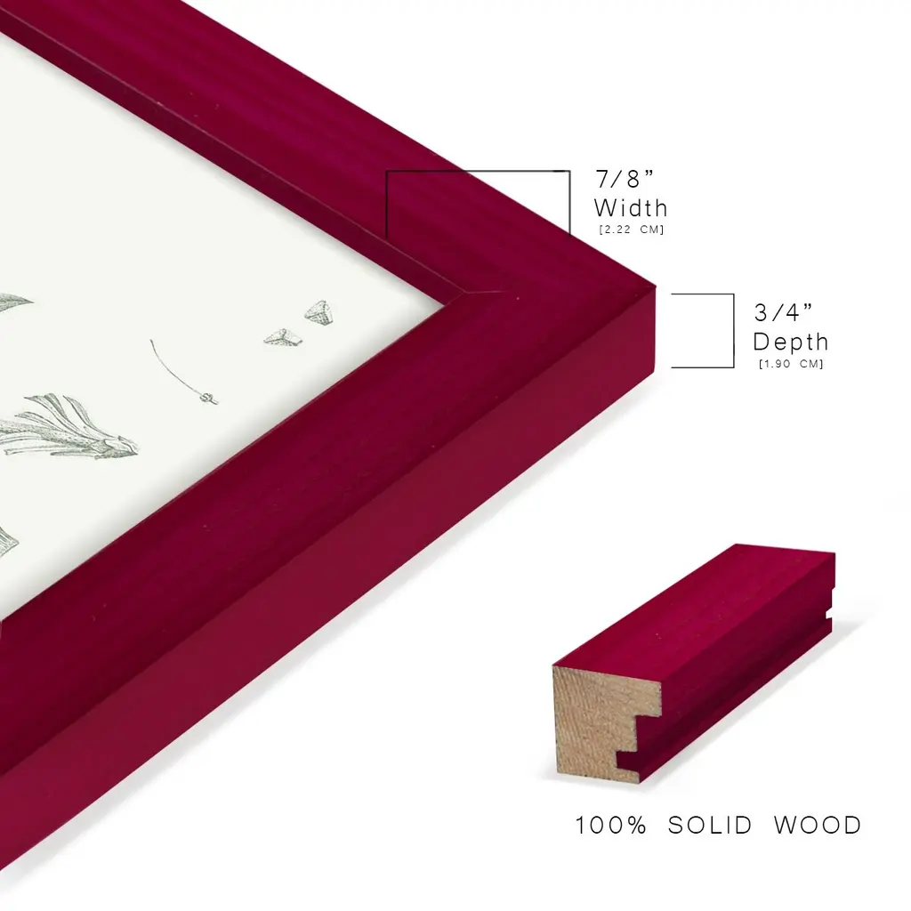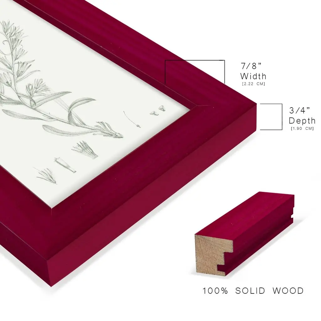 Botanical Study in Sage II -EZ SWITCH Framed Print w/glass-Cherry Red A delightful, framed print. Featuring a solid wood frame with real wood glass. This premium print is giclee quality. In addition, every frame features a removable back and table top stand. This allows you to change your art in the future or to just stand the art on a table for a new look. We are sure you'll enjoy our new series of EZ SWITCH Framed Art. Solid Wood Frame Real Glass Removable / Replaceable Art Built in Tabletop Stand Sizes range from 4x6 up to 12x15 - buy just one or pair them up as sets as you see fit.