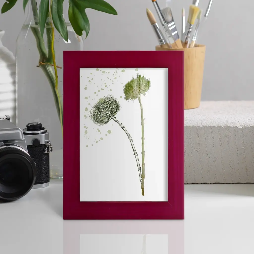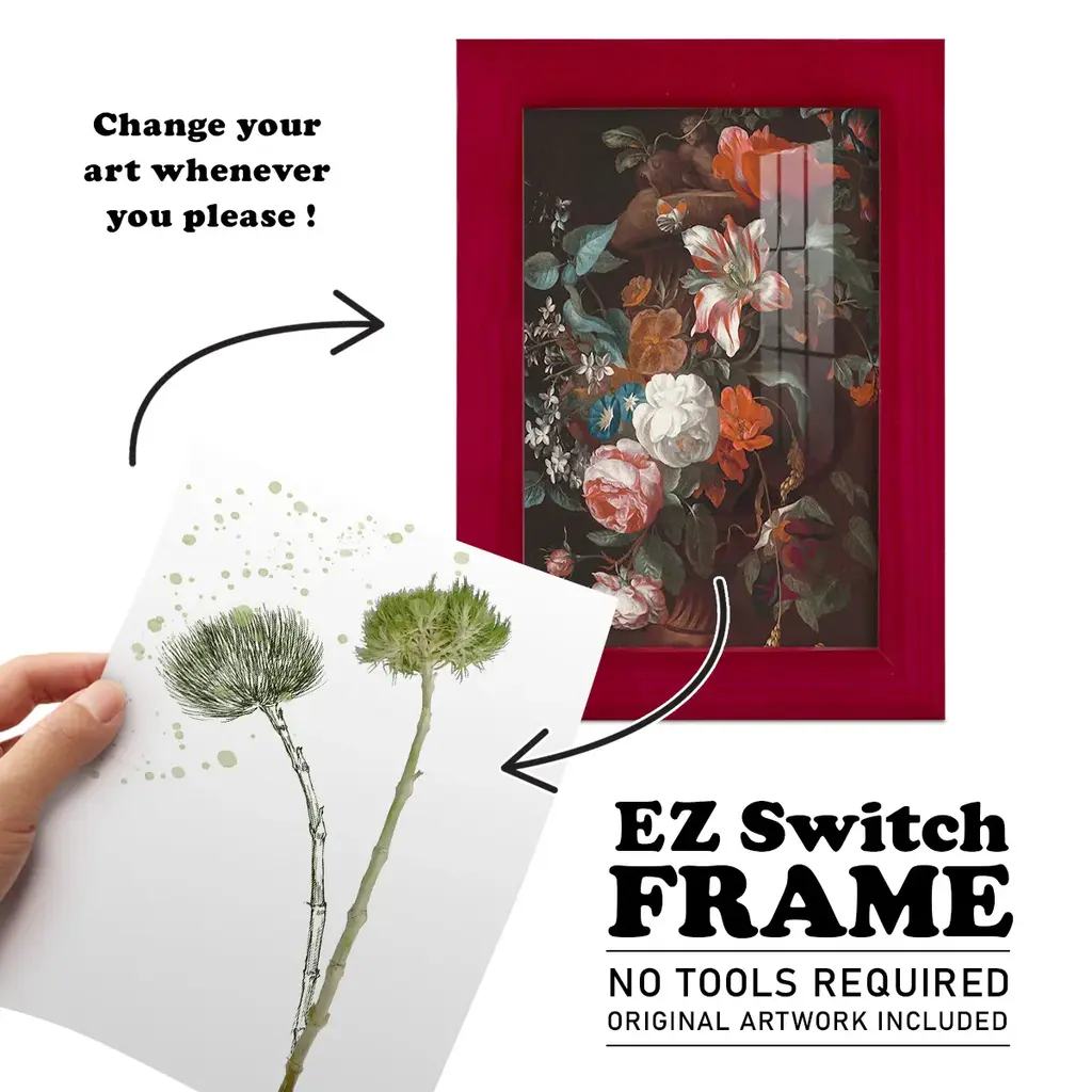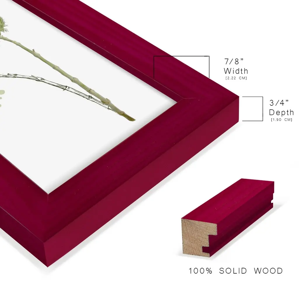Botany Flower V -EZ SWITCH Framed Print w/glass-Cherry Red A delightful, framed print. Featuring a solid wood frame with real wood glass. This premium print is giclee quality. In addition, every frame features a removable back and table top stand. This allows you to change your art in the future or to just stand the art on a table for a new look. We are sure you'll enjoy our new series of EZ SWITCH Framed Art. Solid Wood Frame Real Glass Removable / Replaceable Art Built in Tabletop Stand Sizes range from 4x6 up to 12x15 - buy just one or pair them up as sets as you see fit.