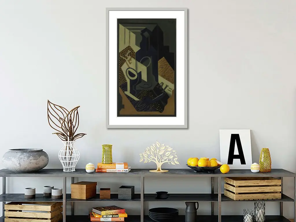 Bottle And Glass By Juan Gris Framed Print