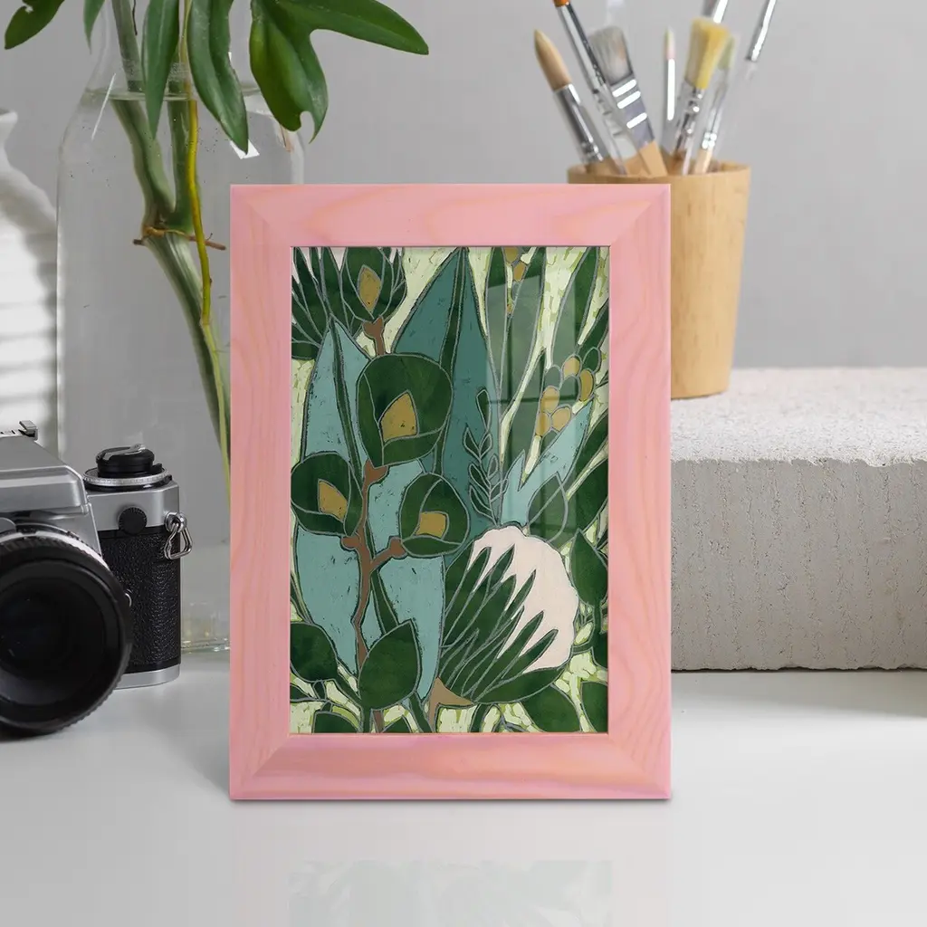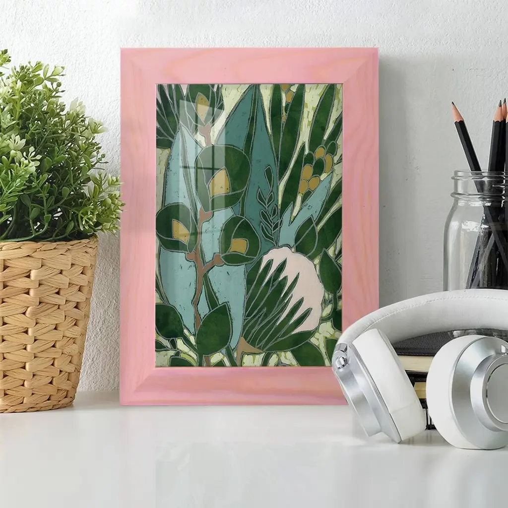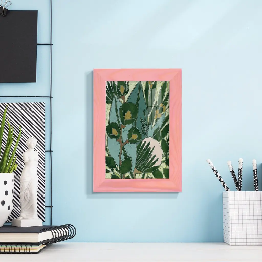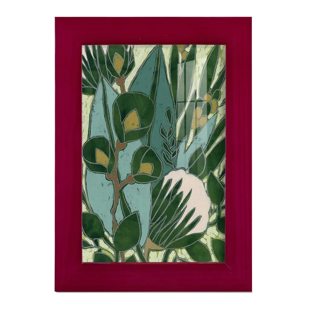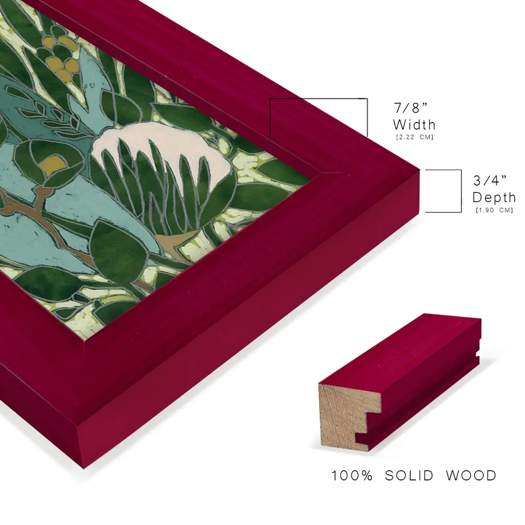 Bottle Glass Garden II -EZ SWITCH Framed Print w/glass-Cherry Red A delightful, framed print. Featuring a solid wood frame with real wood glass. This premium print is giclee quality. In addition, every frame features a removable back and table top stand. This allows you to change your art in the future or to just stand the art on a table for a new look. We are sure you'll enjoy our new series of EZ SWITCH Framed Art. Solid Wood Frame Real Glass Removable / Replaceable Art Built in Tabletop Stand Sizes range from 4x6 up to 12x15 - buy just one or pair them up as sets as you see fit.