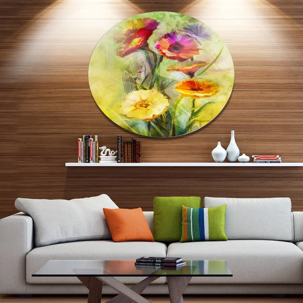 Bouquet Of Gerbera Flowers Watercolor, Floral Round Metal Wall Art, 36"