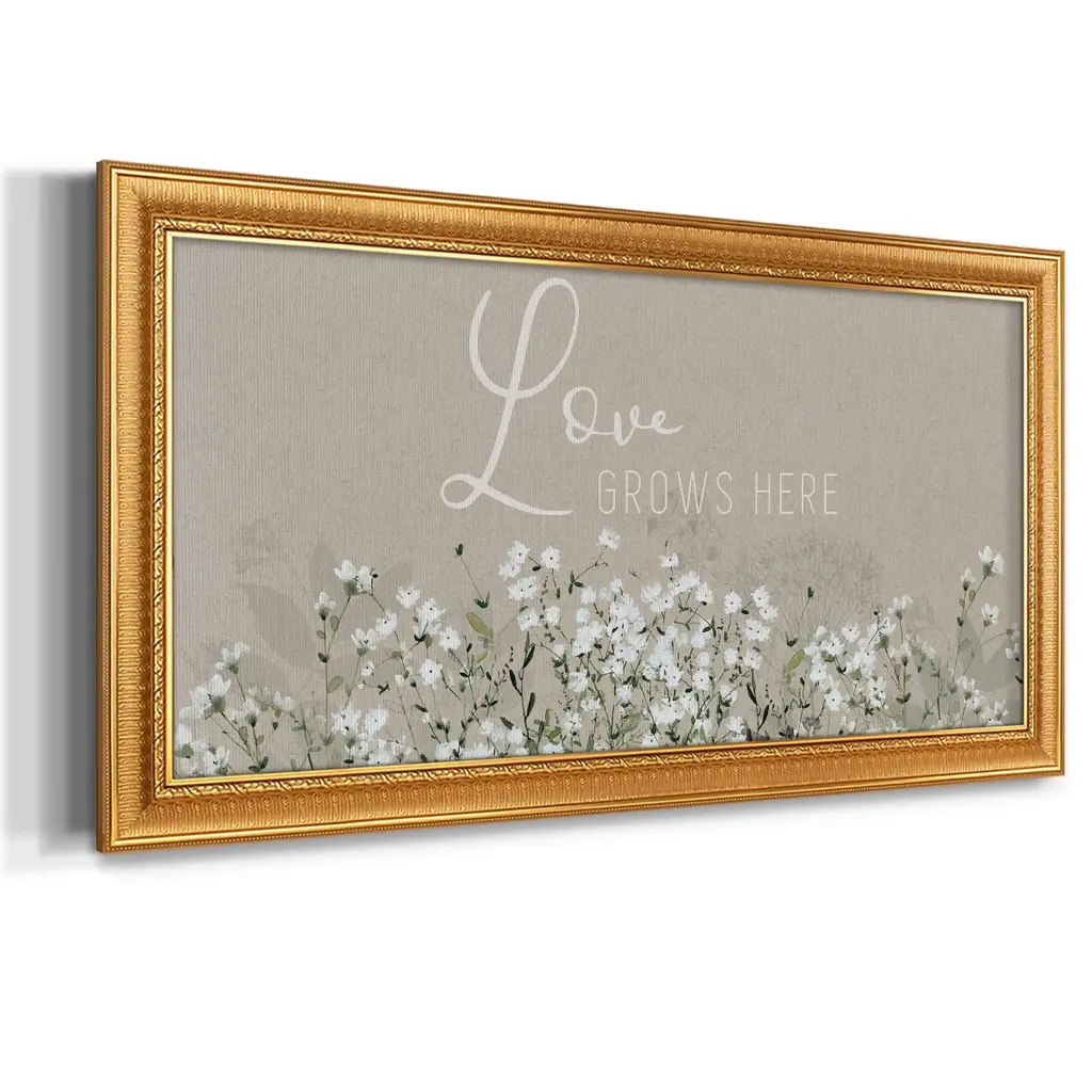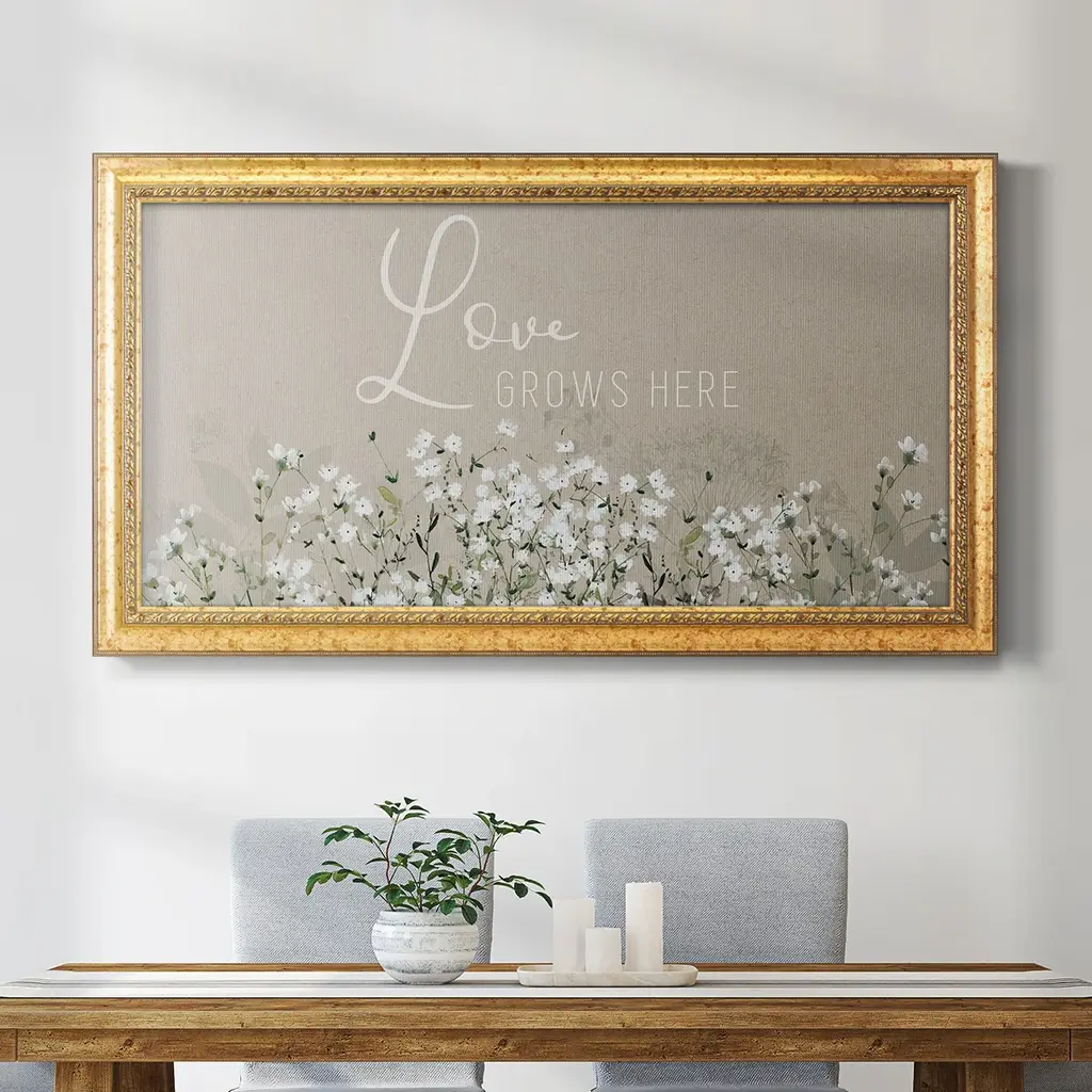 Bouquet of Love Premium Framed Canvas- Ready to Hang A Premium Framed Canvas created to last. Framed in distressed wood and available in an array of sizes and colors Featuring a beveled a solid wood stretcher bar, each piece comes ready to hand 3 SIZES AVAILABLE 21''X37'' - Overall Size 25''X45'' - Overall Size 29''x53'' - Overall Size Each piece is made to order. Each piece comes with hanging hardware. Made in the USA Ready to Hang Giclee Paper Print Acrylic Glass Beveled Matt Board