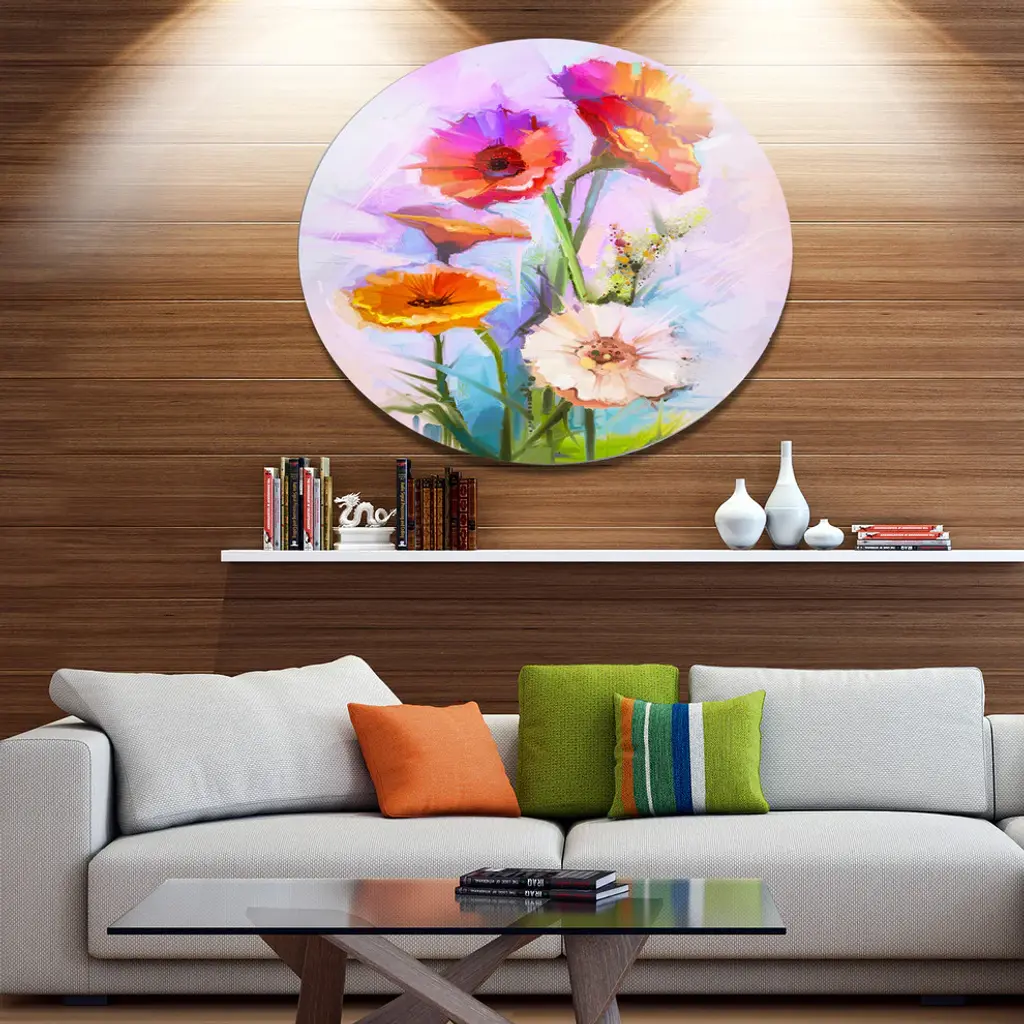 Bouquet Of Red White Flowers, Modern Floral Round Wall Art, 38"