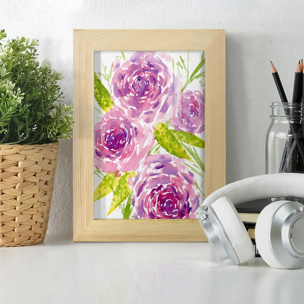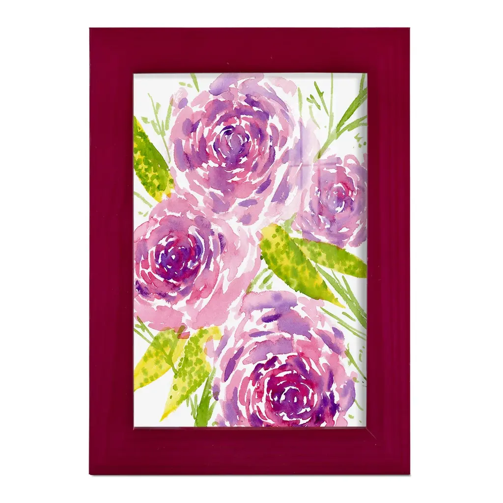 Bouquet Rose II -EZ SWITCH Framed Print w/glass-Cherry Red A delightful, framed print. Featuring a solid wood frame with real wood glass. This premium print is giclee quality. In addition, every frame features a removable back and table top stand. This allows you to change your art in the future or to just stand the art on a table for a new look. We are sure you'll enjoy our new series of EZ SWITCH Framed Art. Solid Wood Frame Real Glass Removable / Replaceable Art Built in Tabletop Stand Sizes range from 4x6 up to 12x15 - buy just one or pair them up as sets as you see fit.