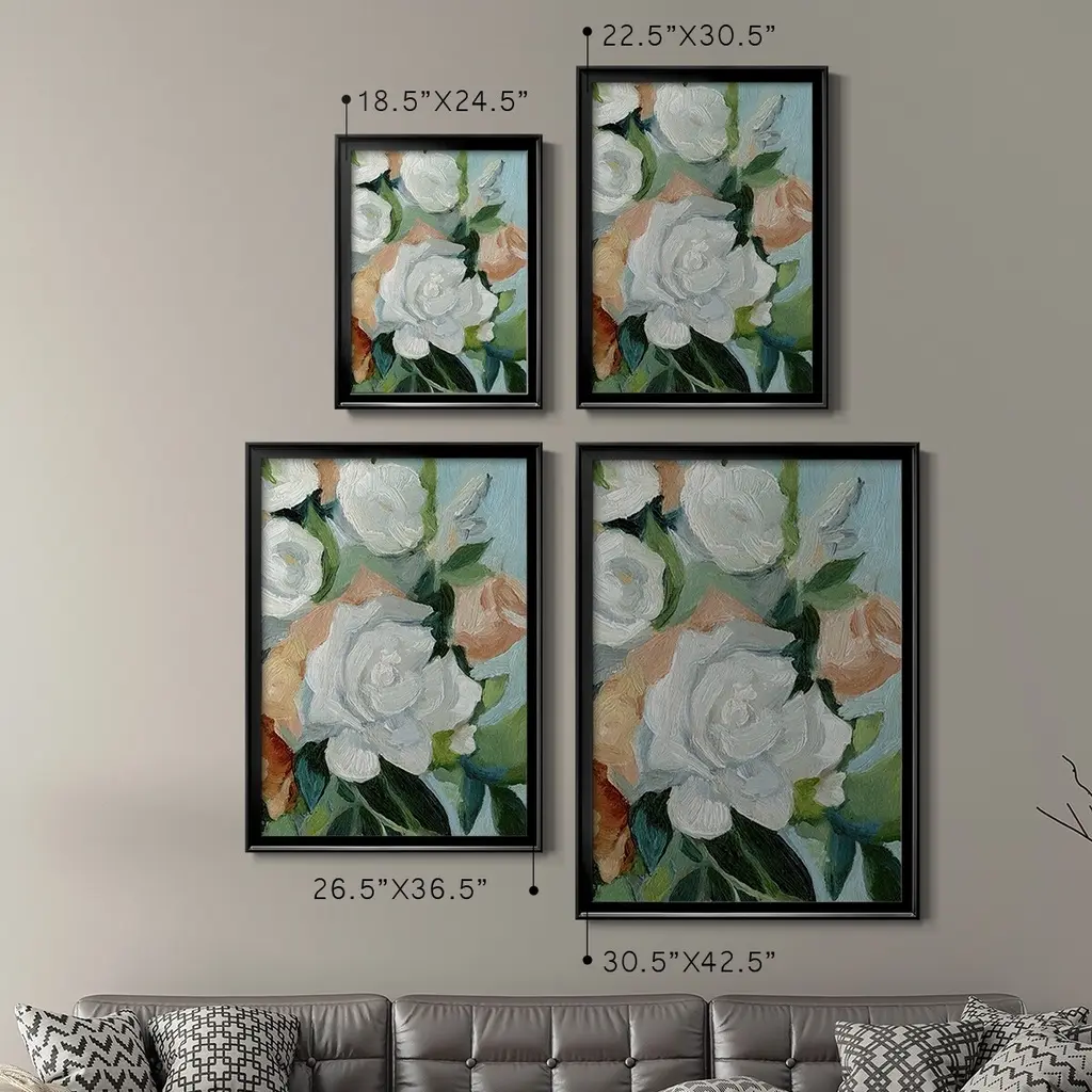 Bouquet Scatter I Premium Framed Print - Ready to Hang A Premium Framed Print created to last. Framed in distressed wood and available in an array of sizes and colors Featuring a beveled a solid wood stretcher bar, each piece comes ready to hand 4 SIZES AVAILABLE 30.5''X42.5'' - Overall Size 26.5'X36.5'' - Overall Size 22.5''x30.5'' - Overall Size 18.5''x24.5'' - Overall Size Each piece is made to order. Each piece comes with hanging hardware. Made in the USA Ready to Hang