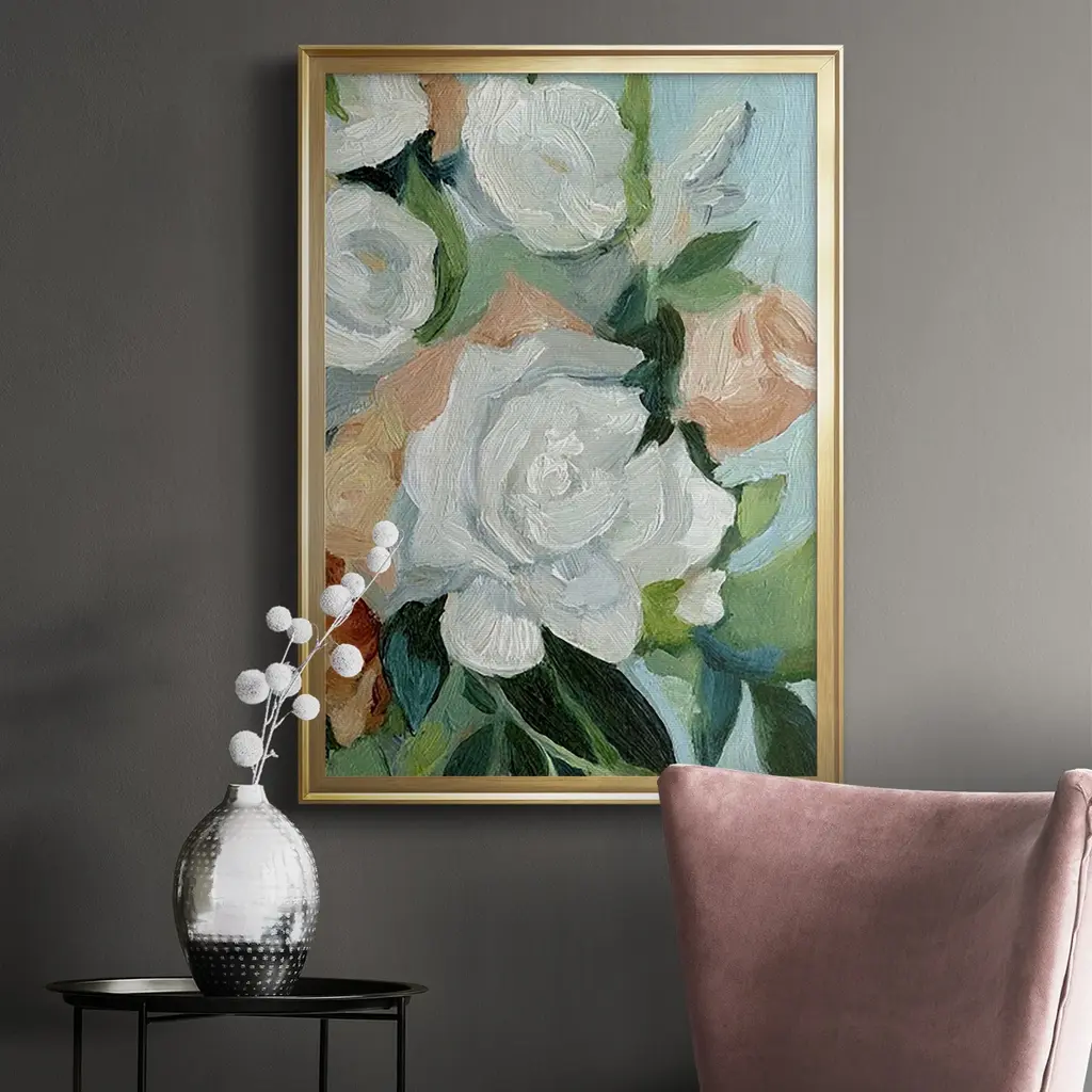 Bouquet Scatter I Premium Framed Print - Ready to Hang A Premium Framed Print created to last. Framed in distressed wood and available in an array of sizes and colors Featuring a beveled a solid wood stretcher bar, each piece comes ready to hand 4 SIZES AVAILABLE 30.5''X42.5'' - Overall Size 26.5'X36.5'' - Overall Size 22.5''x30.5'' - Overall Size 18.5''x24.5'' - Overall Size Each piece is made to order. Each piece comes with hanging hardware. Made in the USA Ready to Hang
