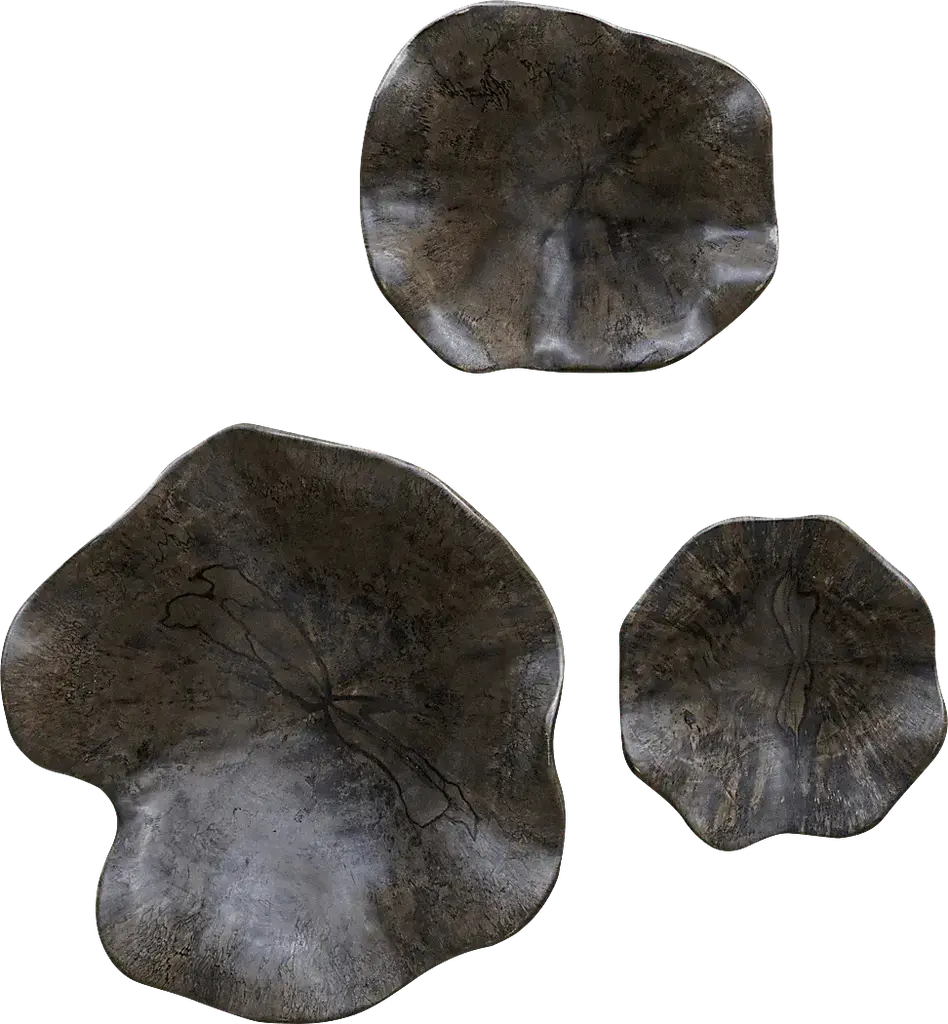 This set of three wood wall art features naturally spalted tamarind wood, finished in a soft blue-green. Because each is individually handcrafted, sizes may vary. Cracks and variations in the grain are natural to this type of wood. With the advanced product engineering and packaging reinforcement, Bowery Hill maintains some of the lowest damage rates in the industry. Each product is designed, manufactured and packaged with shipping in mind.Features: • Finish: Soft Blue Green • Materials: Tamarind Wood • wall art combines premium quality materials with unique high-style design. • Designed by Matthew WilliamsSpecifications: • Product Dimensions: (Small) 10.00" H x 10.00" W x 5.00" D, (Medium) 15.00" H x 15.00" W x 7.00" D, (Large) 16.00" H x 16.00" W x 7.00" D • Product Weight: 9.24 lbs