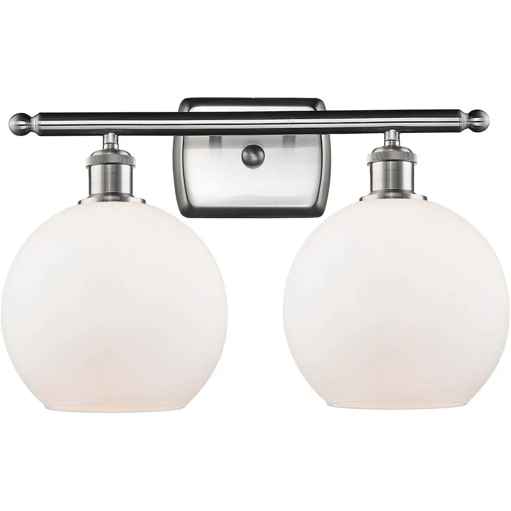 A sensible light source that's high in style. Fixed to a round, raised backplate bracket made of Metal, the Bowery Vanity Light by Hudson Valley Lighting shows off ribbed detailing and globe shades made of Glass. Stepped pedestals and tubular stems make for a thoughtful finishing touch, adding a hint of industrial appeal to its otherwise transitional features. Powered by incandescent bulbs, this design is perfectly suited for casting a soft, white glow above the vanity and mirror in the bathroom.