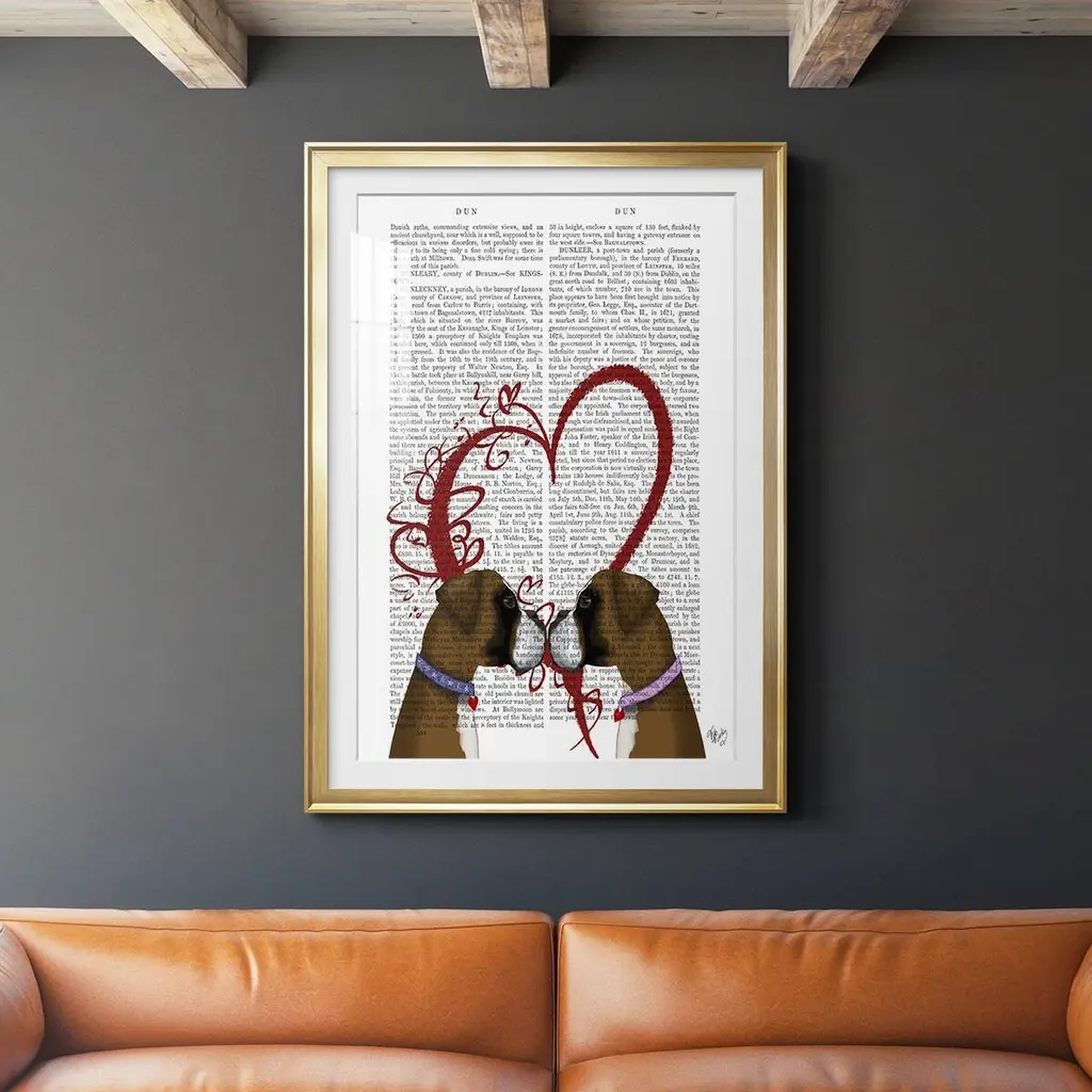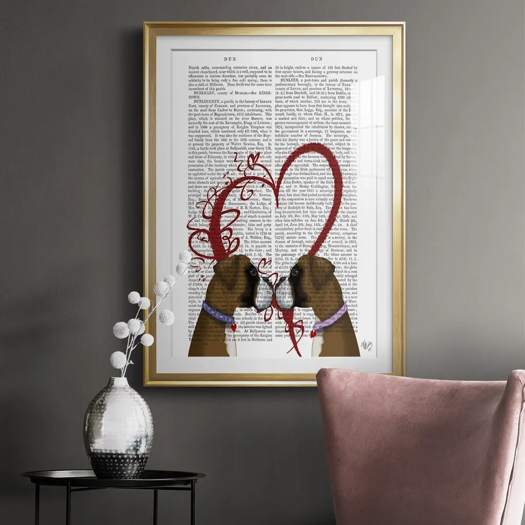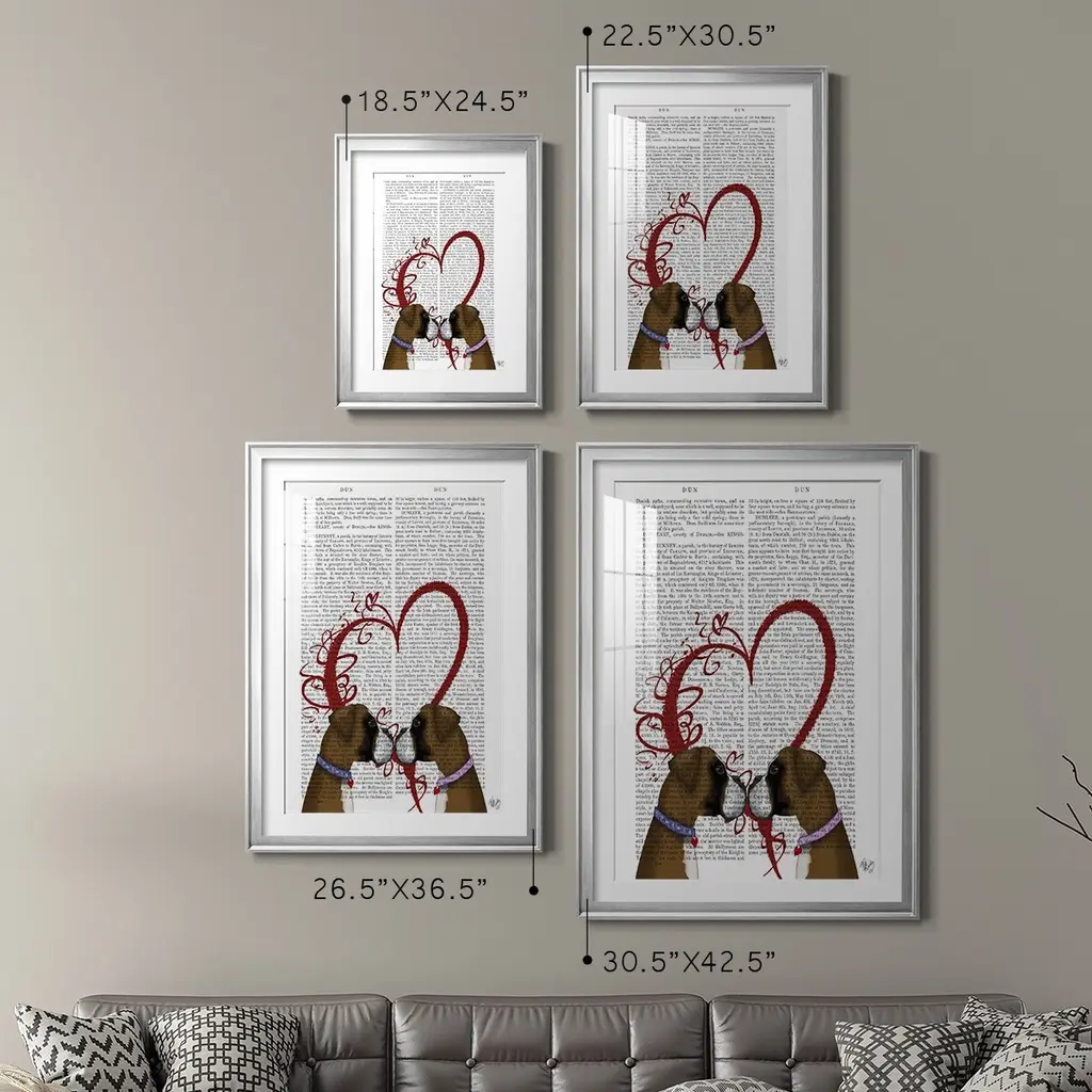 Boxer Love Premium Framed Print - Ready to Hang A Premium Framed Print created to last. Framed in distressed wood and available in an array of sizes and colors Featuring a beveled a solid wood stretcher bar, each piece comes ready to hand 4 SIZES AVAILABLE 30.5''X42.5'' - Overall Size 26.5'X36.5'' - Overall Size 22.5''x30.5'' - Overall Size 18.5''x24.5'' - Overall Size Each piece is made to order. Each piece comes with hanging hardware. Made in the USA Ready to Hang Giclee Paper Print Acrylic Glass Beveled Matt Board