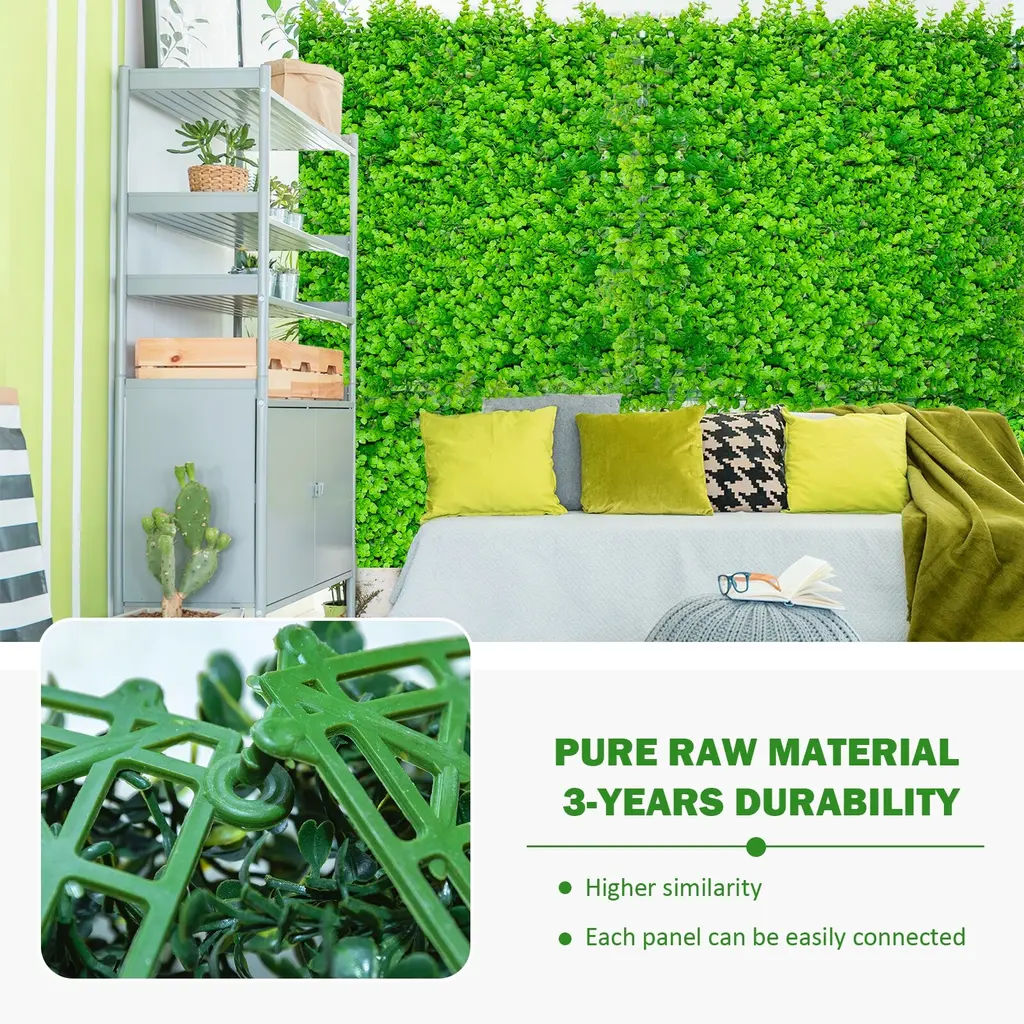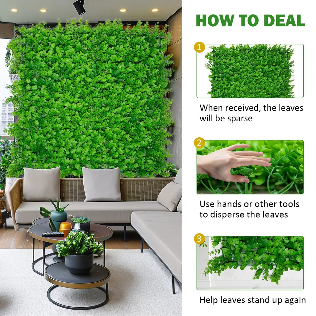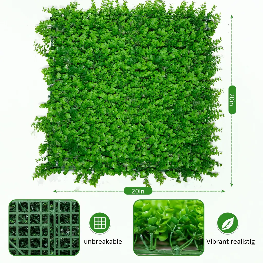 Warm tips: Product after-sales guide 🚀Thank you for purchasing our products!Please do not return the product in case of problems. Please take a photo and send it to us, we will quickly process and provide a reasonable solution. Thank you for your cooperation! 🙏Versatile: Set of 20 artificial plant panels, each measuring 20" x 20" - perfect for creating lush green walls indoors or outdoors.Realistic Appearance: Crafted with high-quality materials to mimic the look and texture of real foliage, adding a natural and vibrant touch to any space.Easy Installation: Lightweight and modular design allows for quick assembly and customization to suit your desired layout.Low Maintenance: No watering or pruning required, providing a hassle-free solution for incorporating greenery into your environment.Durable Construction: Built to withstand indoor and outdoor conditions, ensuring long-lasting beauty and value.