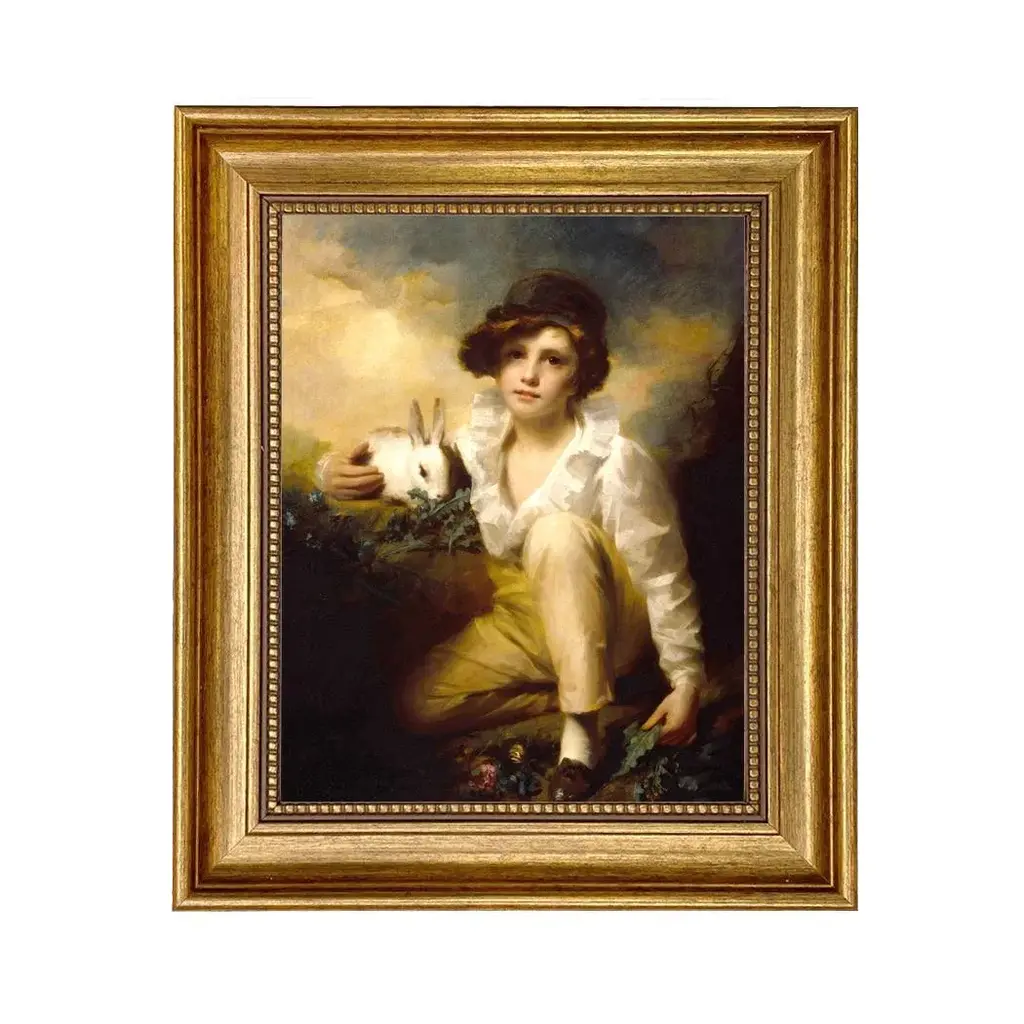 Boy And Rabbit By Raeburn Print On Canvas In Antiqued Gold Frame- 11-1/2" X 13-1/2"