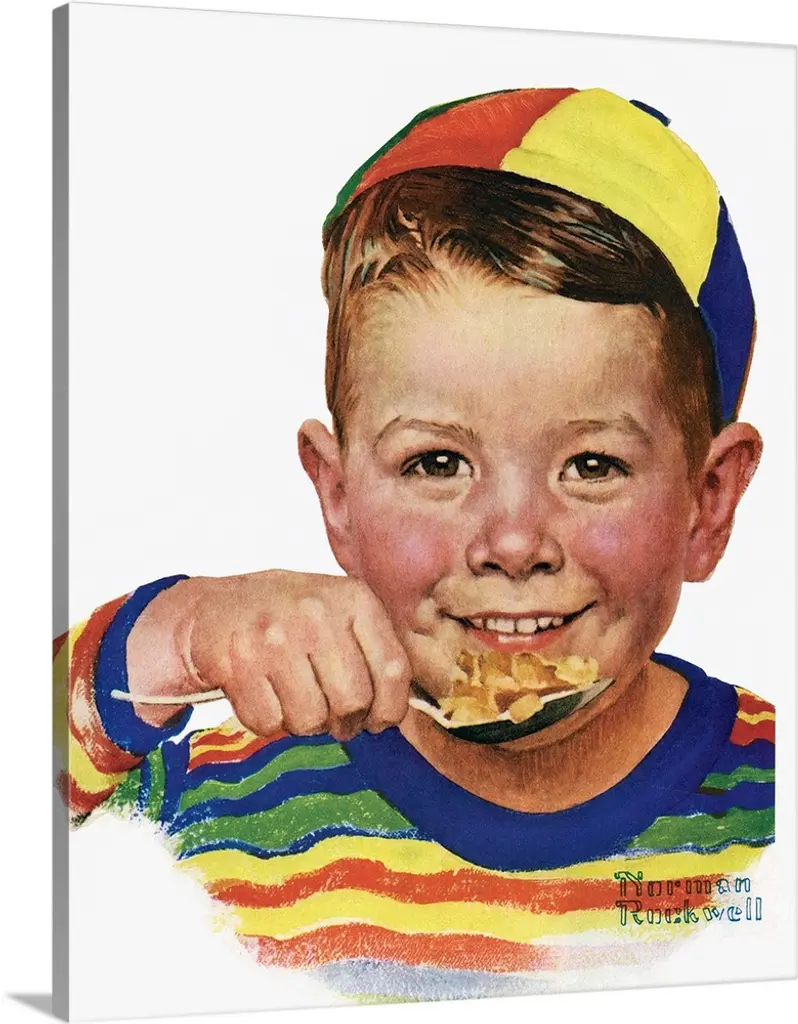 In Rockwell's world children disobeyed rules, adolescent girls grappled with social pressures, boys struggled with their evolution into manhood, and, in his most powerful paintings, society confronted issues of race. Many of his images of youth intended to evoke nostalgia, depict real family relationships, and memorialize the everyday. Approved by the Norman Rockwell Family Agency