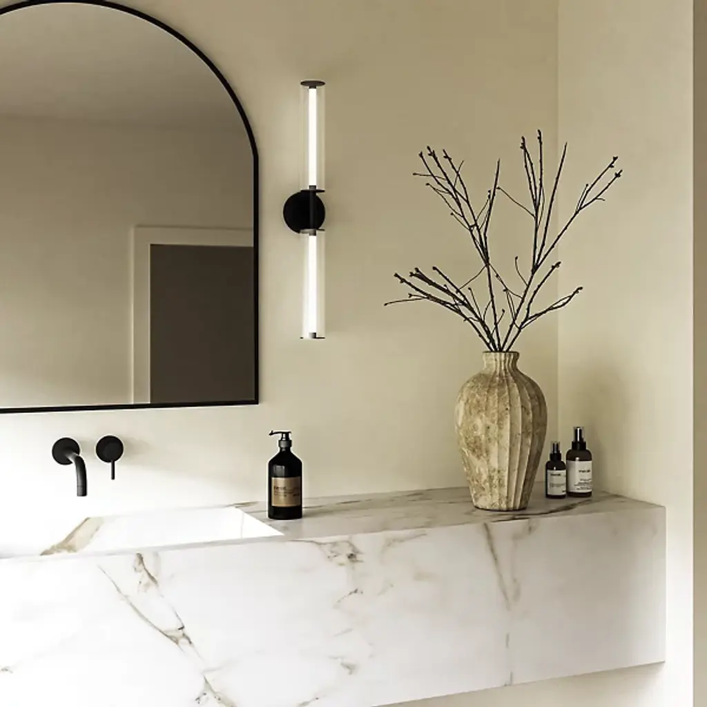 The Braga LED Vanity Light from Kuzco Lighting will transform your bathroom into a haven of modern luxury with the Braga integrated LED vanity fixture. Seamlessly merging form and function, this cutting-edge luminaire features a distinctive dual-cylinder design. The inner frosted diffuser emits a soft and inviting glow, while the outer shade, crafted from clear acrylic, adds a touch of sophistication. Enjoy the flexibility of horizontal or vertical mounting, allowing you to customize this versatile piece to perfectly complement your space. Elevate your bathroom oasis with this stylish and functional lighting solution.