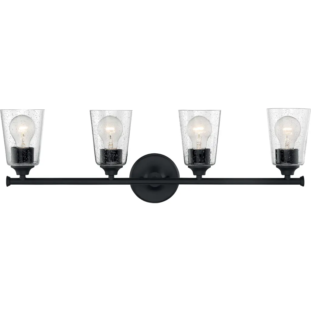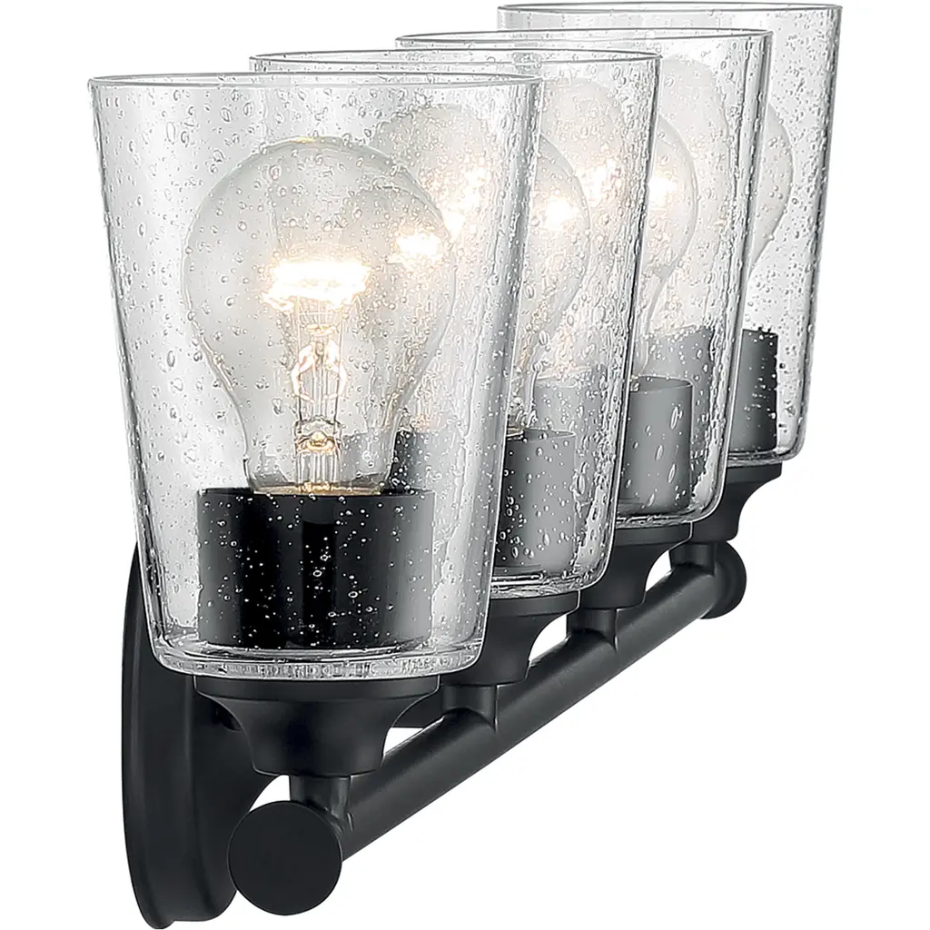 Bransel 4 Light Vanity with Seeded Glass Matte Black Finish