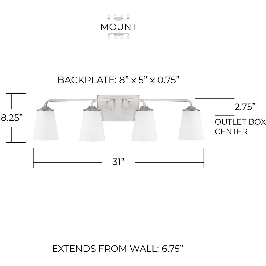 31" 4-Light Vanity in Brushed Nickel with Soft White Glass Shade