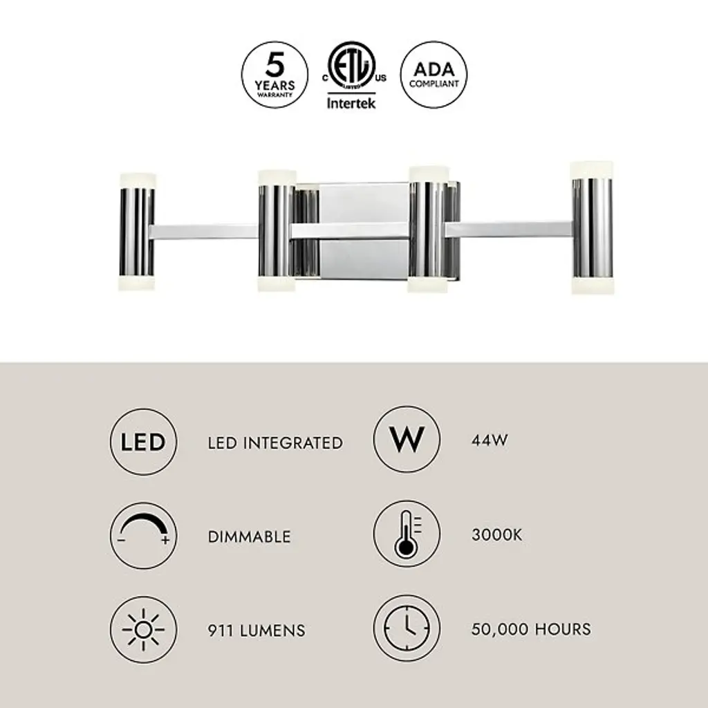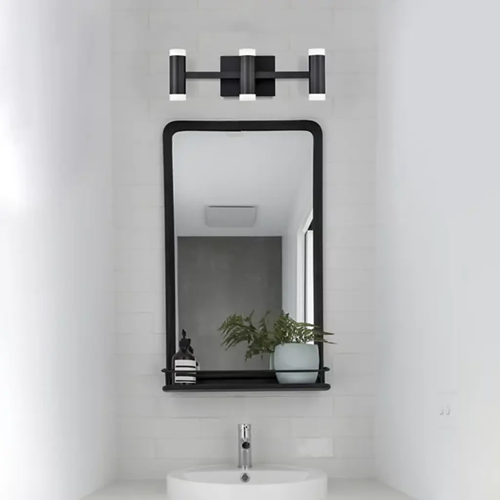 The Brazen LED Vanity Light by Kuzco Lighting is a handsome blend of beautiful materials. A smooth rectangular backplate supports a slim horizontal arm, with equidistantly set extruded Aluminum quatrefoil lamps. Capped on either end with Opal diffusers, this fixture distributes a lovely even upward and downward energy efficient light. Confident and sophisticated, this piece is at home in master and guest bathrooms alike, lending a balanced composition and an extra layer of illumination to surroundings.