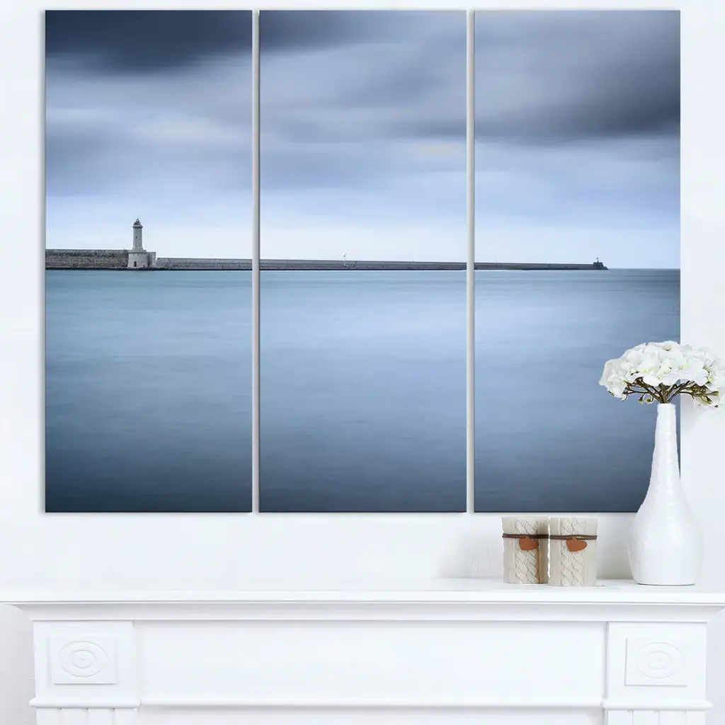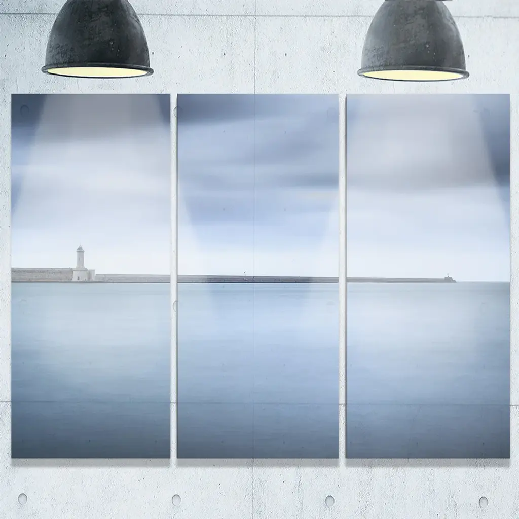 "Breakwater And Soft Water Under Clouds" Metal Wall Art, 3 Panels, 36"x28"