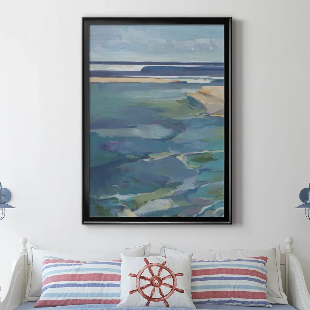 BREAKWATER Premium Framed Canvas - Ready to Hang A Premium Framed Canvas created to last. Framed in distressed wood and available in an array of sizes and colors Featuring a beveled a solid wood stretcher bar, each piece comes ready to hand 4 SIZES AVAILABLE 30.5''X42.5'' - Overall Size 26.5'X36.5'' - Overall Size 22''x30'' - Overall Size 18''x24'' - Overall Size Each piece is made to order. Each piece comes with hanging hardware. Made in the USA Ready to Hang Giclee Paper Print Acrylic Glass Beveled Matt Board