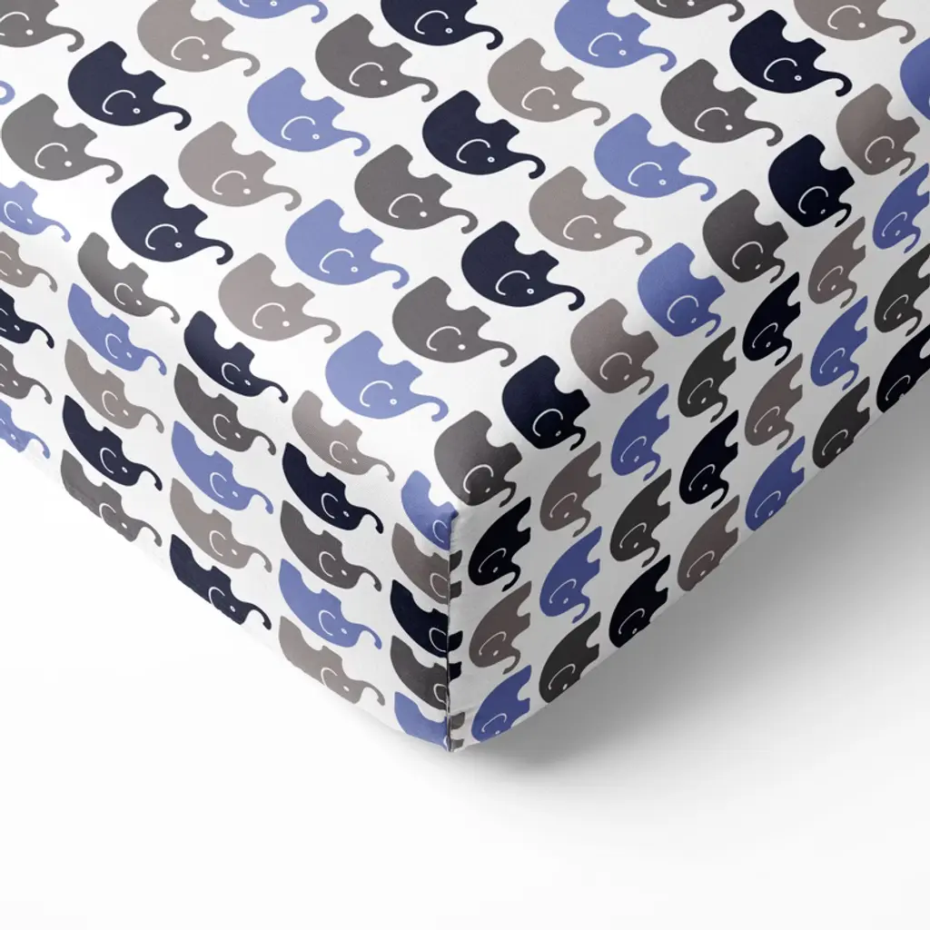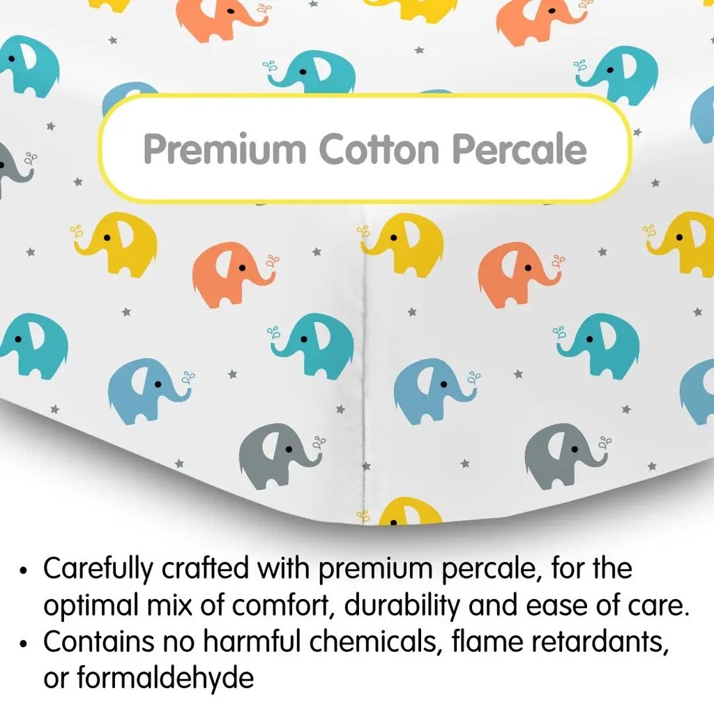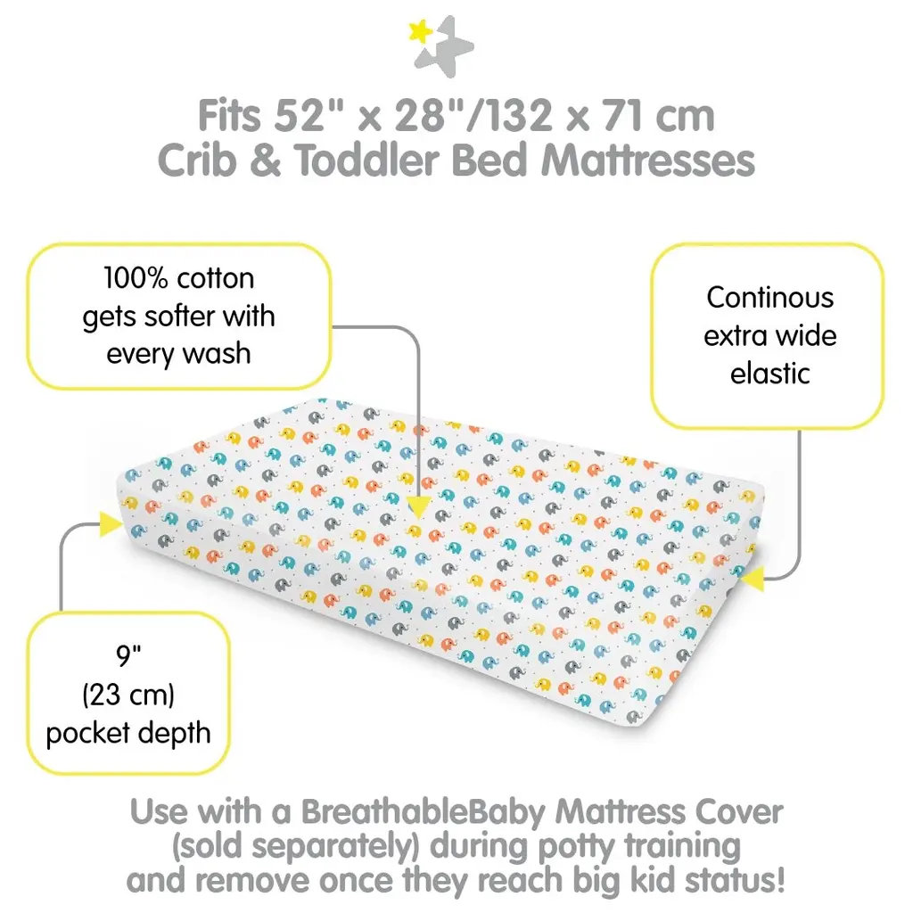 Breathablebaby Cotton Percale Fitted Sheet, For 52" X 28"/132 X 71 Cm Crib & Toddler Bed Mattress, Prints (2-Pack) - Elephants