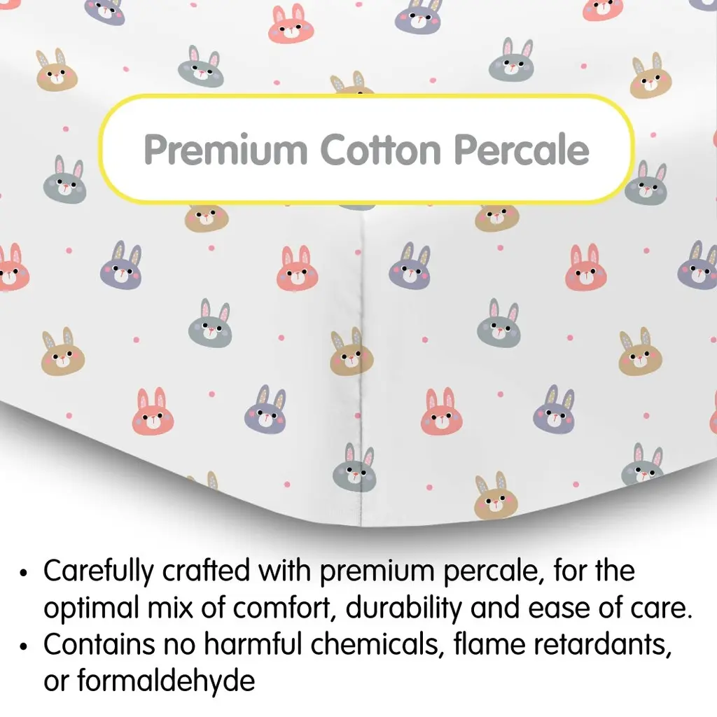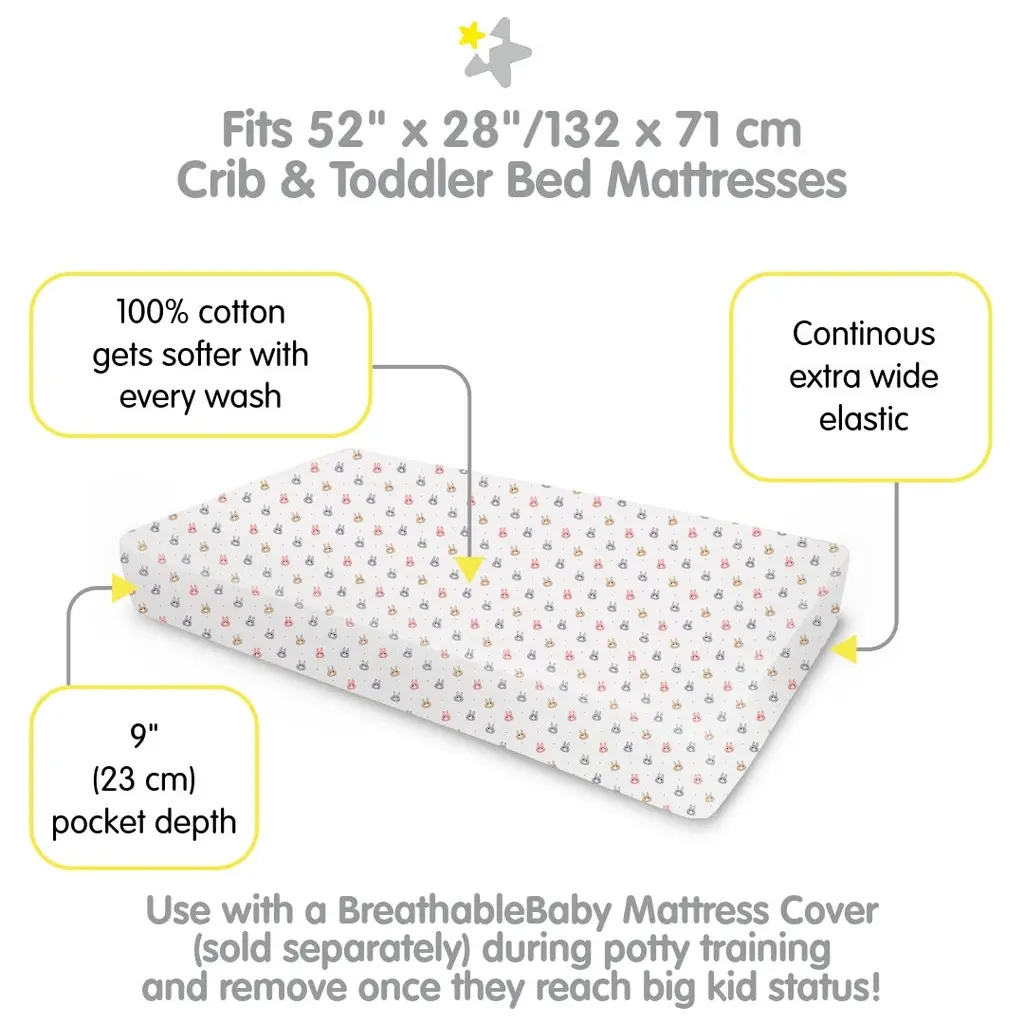 Breathablebaby Cotton Percale Fitted Sheet, For 52" X 28"/132 X 71 Cm Crib & Toddler Bed Mattress, Prints (2-Pack) - Rabbits