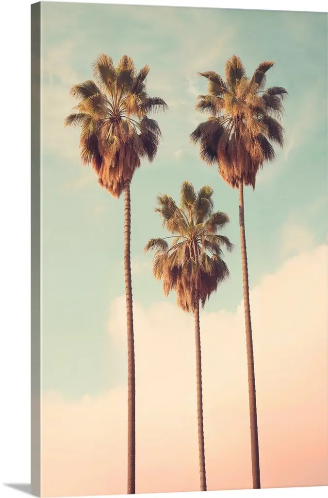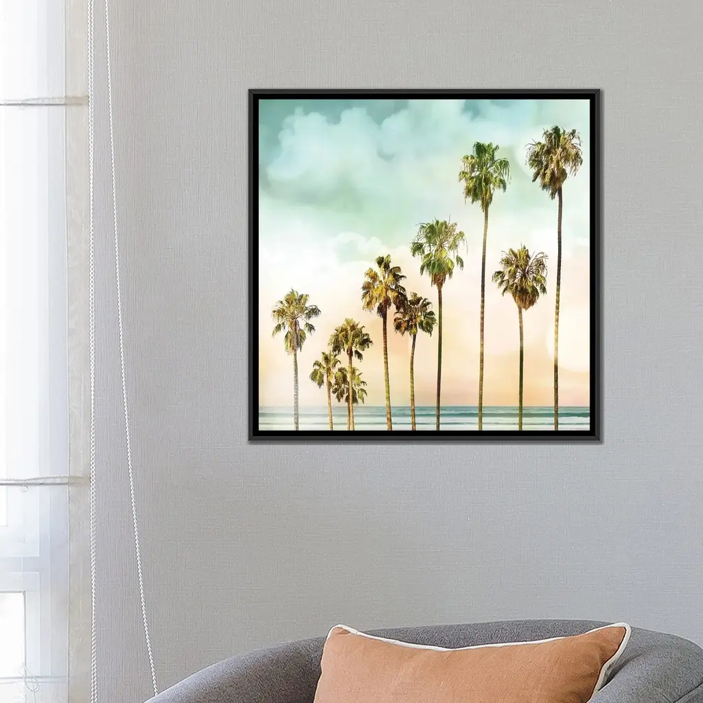 Add a sunshiny feeling to your living space with this California Palm Trees Art Print from Bree Madden and Deny Designs. This West Coast-inspired art print features a photo of palm trees set against a bright blue sky, and the bronze-tone highlights of the palms adds a vintage feeling you'll love. Pair this attractive art print with a frame of your choice to create look that speaks to you, and enjoy the California feeling you get every time you look at it.
