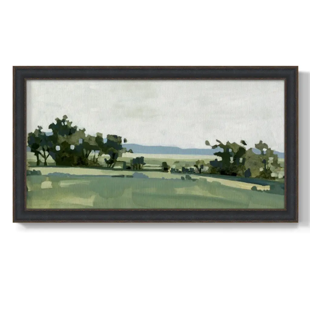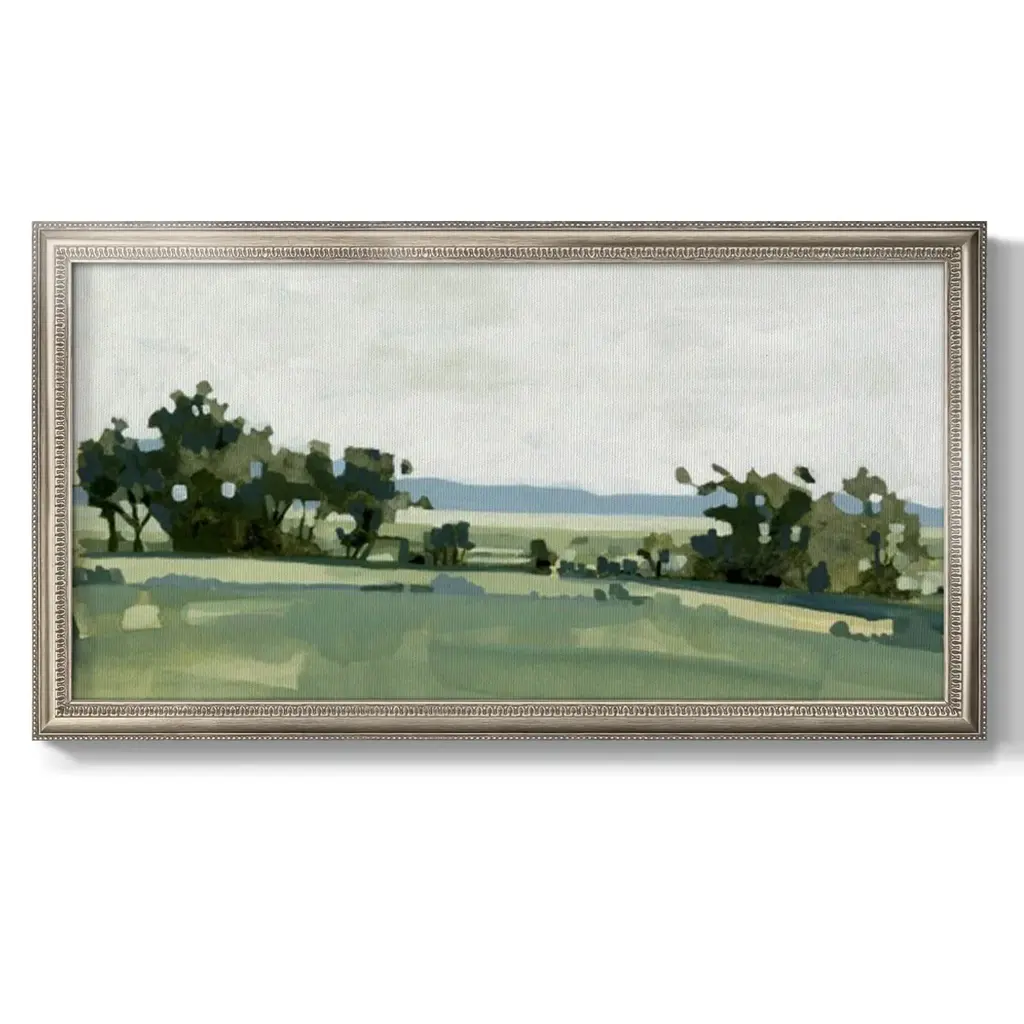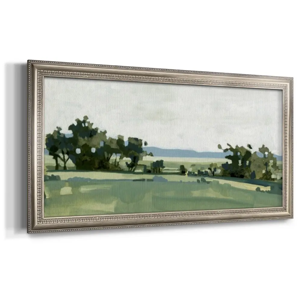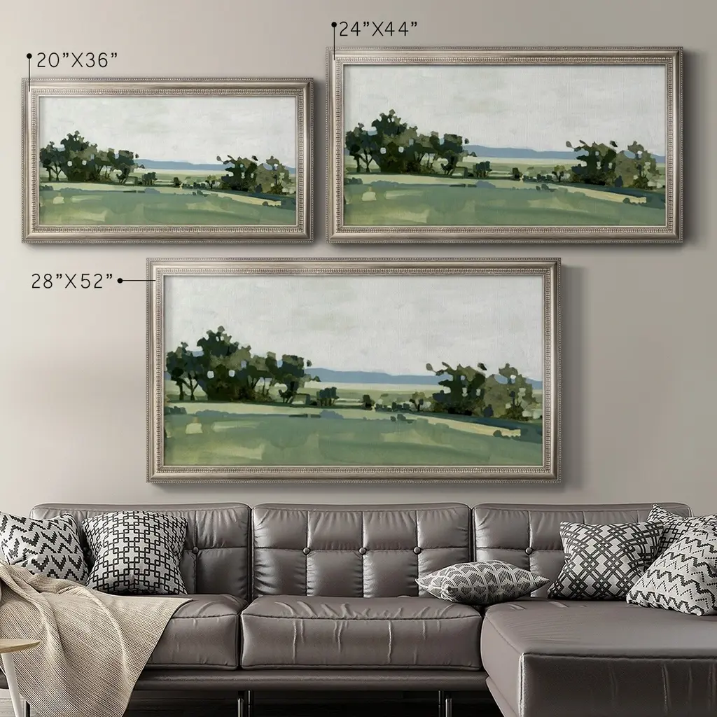 Breezy Landscape III Premium Framed Canvas- Ready to Hang A Premium Framed Canvas created to last. Framed in distressed wood and available in an array of sizes and colors Featuring a beveled a solid wood stretcher bar, each piece comes ready to hand 3 SIZES AVAILABLE 21''X37'' - Overall Size 25''X45'' - Overall Size 29''x53'' - Overall Size Each piece is made to order. Each piece comes with hanging hardware. Made in the USA Ready to Hang Giclee Paper Print Acrylic Glass Beveled Matt Board