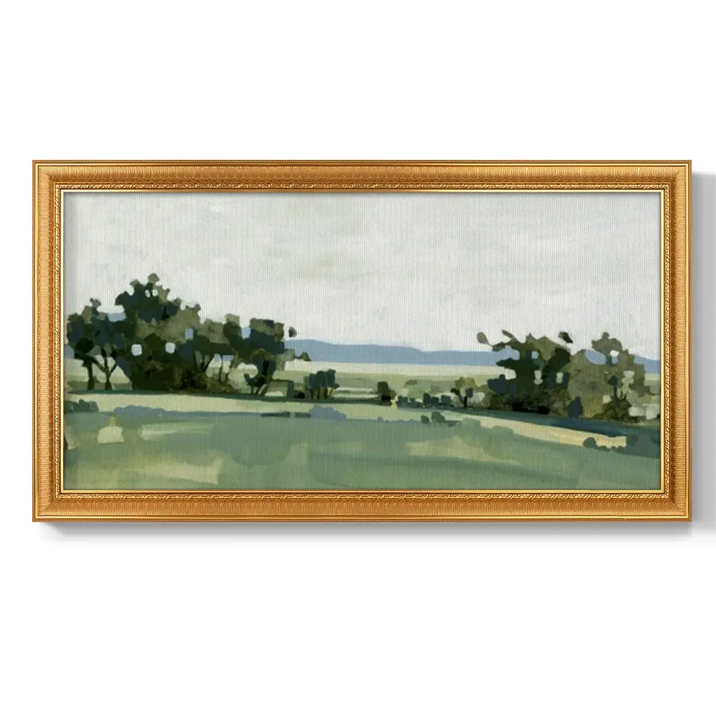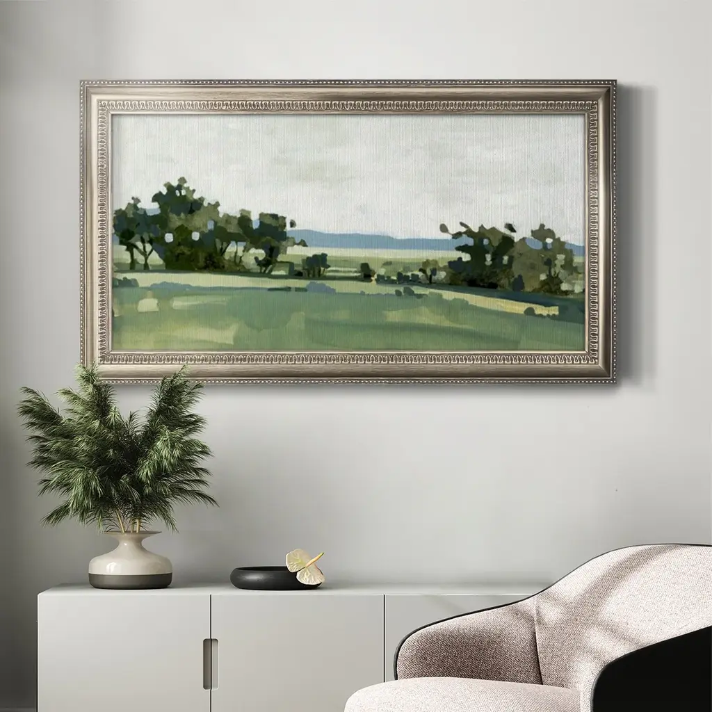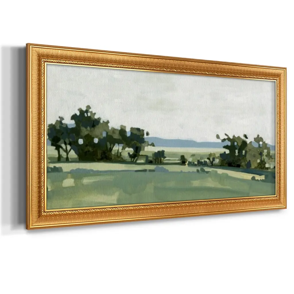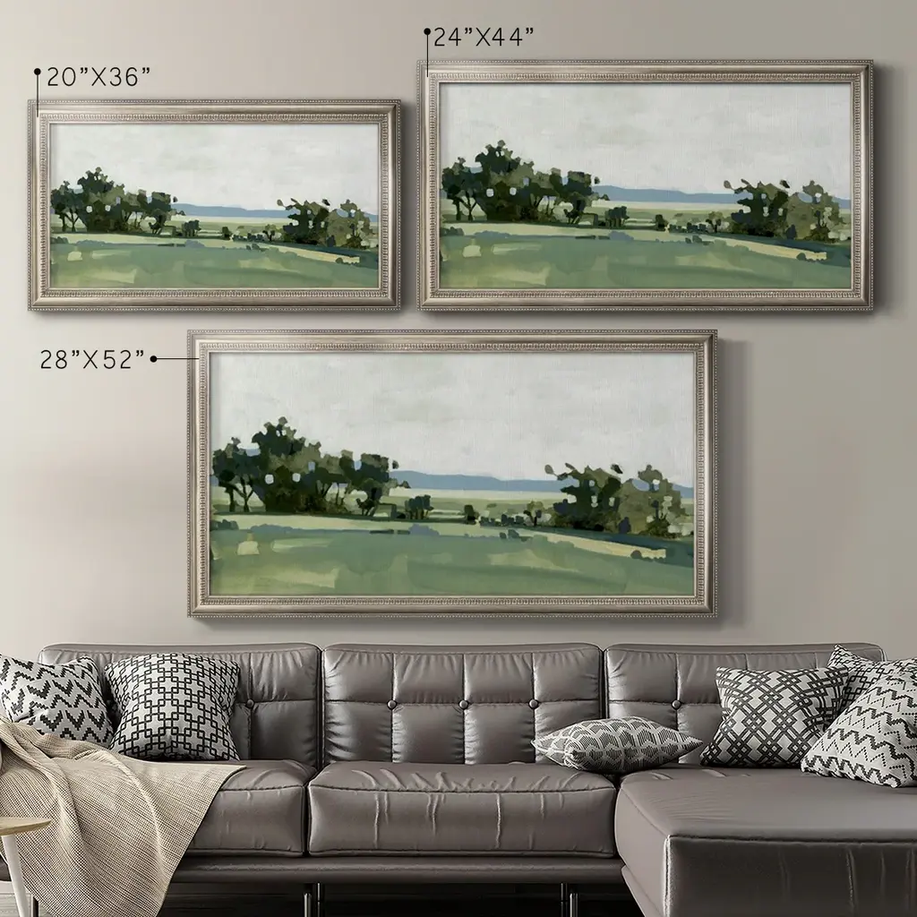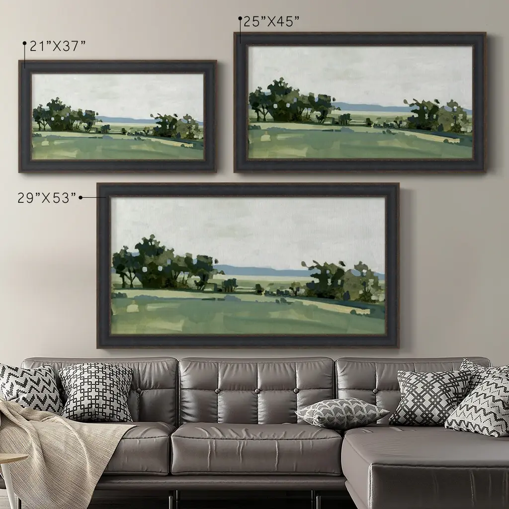 Breezy Landscape III Premium Framed Canvas- Ready to Hang A Premium Framed Canvas created to last. Framed in distressed wood and available in an array of sizes and colors Featuring a beveled a solid wood stretcher bar, each piece comes ready to hand 3 SIZES AVAILABLE 21''X37'' - Overall Size 25''X45'' - Overall Size 29''x53'' - Overall Size Each piece is made to order. Each piece comes with hanging hardware. Made in the USA Ready to Hang Giclee Paper Print Acrylic Glass Beveled Matt Board