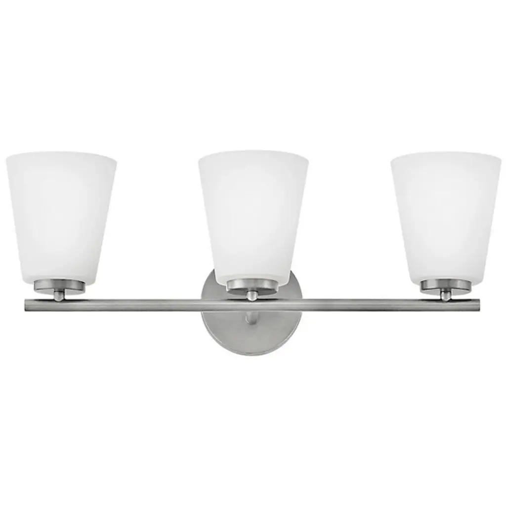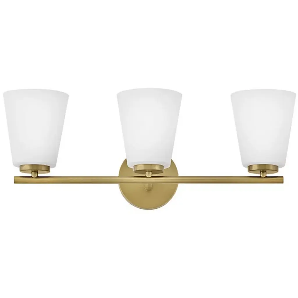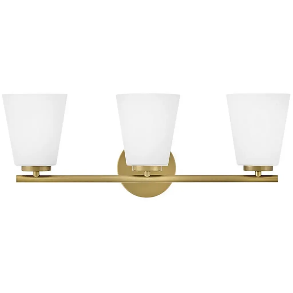 The Bri Bath Bar from Lark embodies stylish versatility with its transitional tapered shade crafted from soft white Etched Opal Glass. This elegant design effortlessly complements any space or décor theme, which enhances aesthetic appeal with timeless elegance. The Bri Wall Sconce integrates into various interior styles, making it an ideal choice for both modern and traditional settings alike. It ensures enduring sophistication and charm in any room.