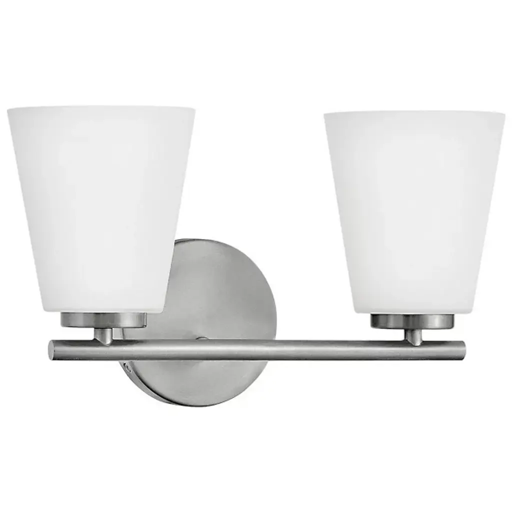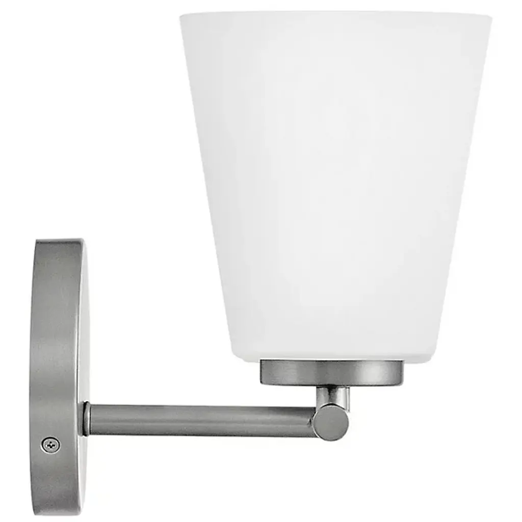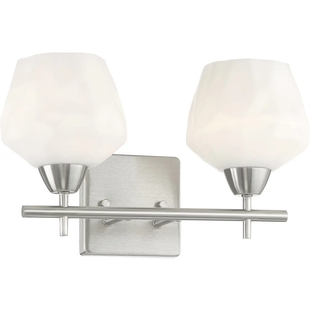 The Bri Bath Bar from Lark embodies stylish versatility with its transitional tapered shade crafted from soft white Etched Opal Glass. This elegant design effortlessly complements any space or décor theme, which enhances aesthetic appeal with timeless elegance. The Bri Wall Sconce integrates into various interior styles, making it an ideal choice for both modern and traditional settings alike. It ensures enduring sophistication and charm in any room.