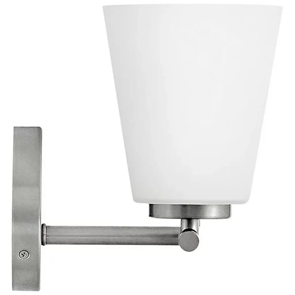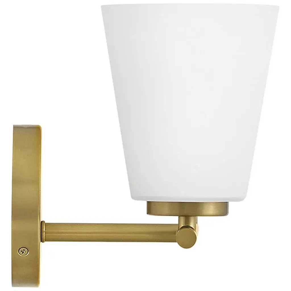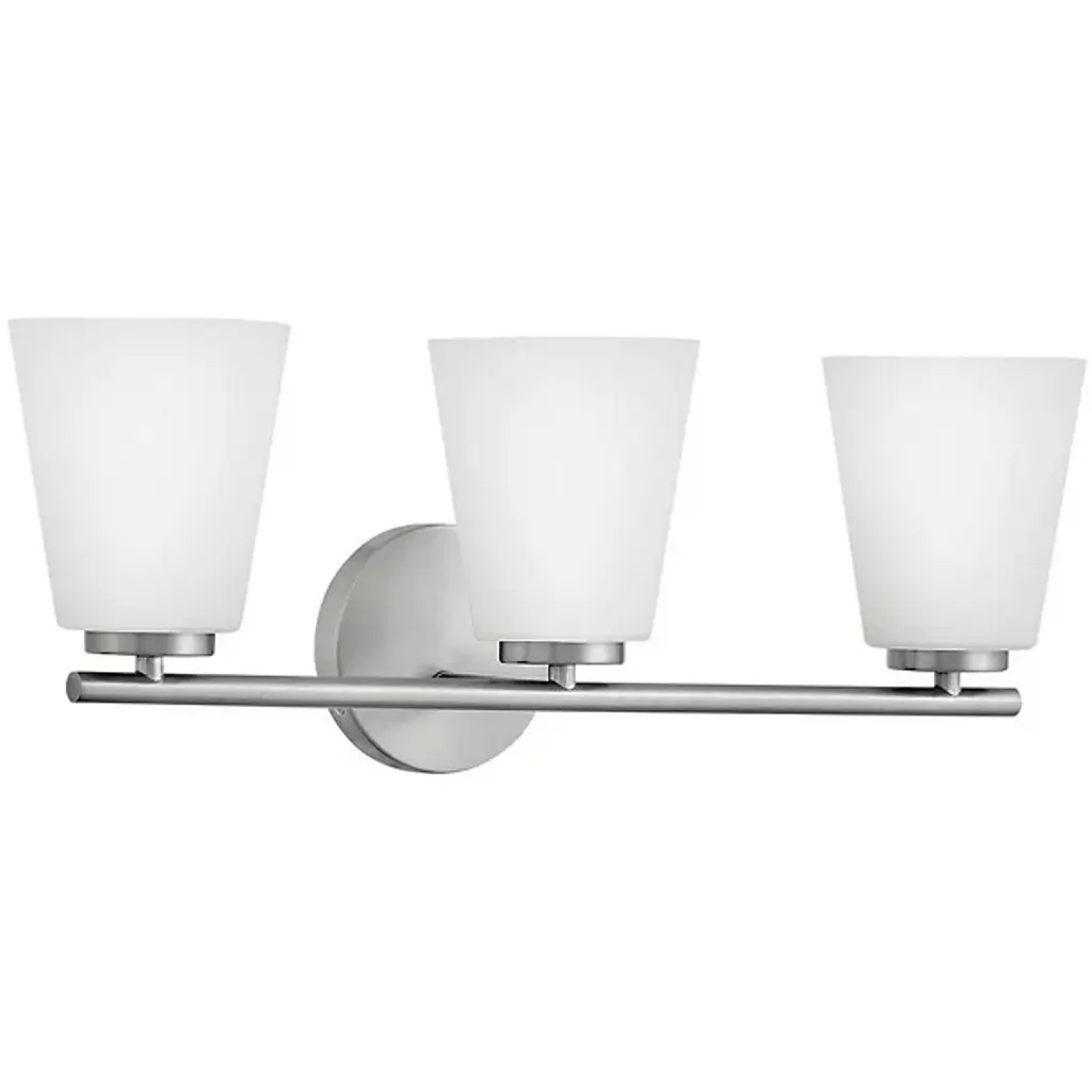 The Bri Bath Bar from Lark embodies stylish versatility with its transitional tapered shade crafted from soft white Etched Opal Glass. This elegant design effortlessly complements any space or décor theme, which enhances aesthetic appeal with timeless elegance. The Bri Wall Sconce integrates into various interior styles, making it an ideal choice for both modern and traditional settings alike. It ensures enduring sophistication and charm in any room.